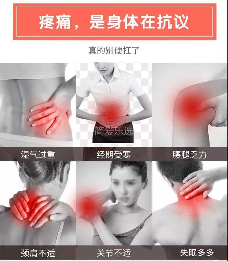 俗话说“十病有九寒““百病寒为先”。 夏天空调吹多了后,寒气特别容易侵入身体, 让人防不胜防。 你有没有发现,身边亲友出现腰背酸痛、关节疼痛、肠胃受凉不适的人越来越多? 大部分人都会受到湿气的困扰,尤其不少女生一年四季手脚冰凉,怎么都捂不热;来大姨妈时,疼到在床上打滚