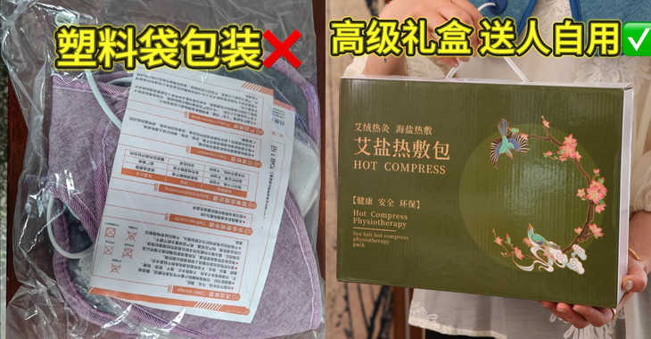 🌟而且对比市面上同价位的热敷包! 他们用的是塑料袋装 想送人都不好意思 这款是专门定制的礼盒包装 非常高级大气!! 无论是送给长辈 还是领导都是非常温暖的 选择每天闲暇时间敷一敷~ 省了去按摩店按摩的钱的