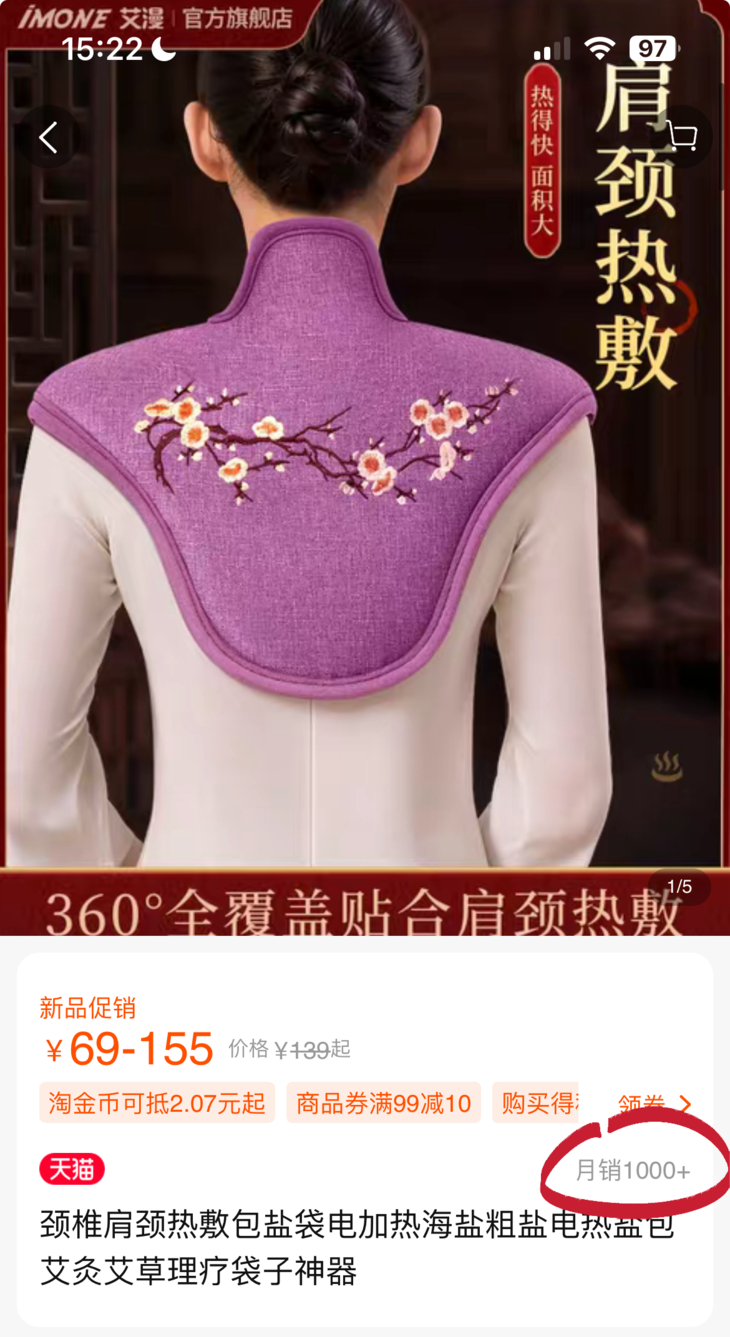 这款【艾漫海盐披肩热敷包】 采用古法粗盐理疗+艾草植物精华 通过加热,作用于酸痛部位 敷一下舒坦一整天!能顶半个老中医!