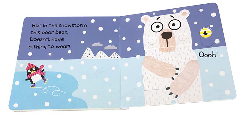 山羊穿着雨衣,猫咪戴着太阳帽。但是在寒冷的雪地里,熊会穿什么呢?