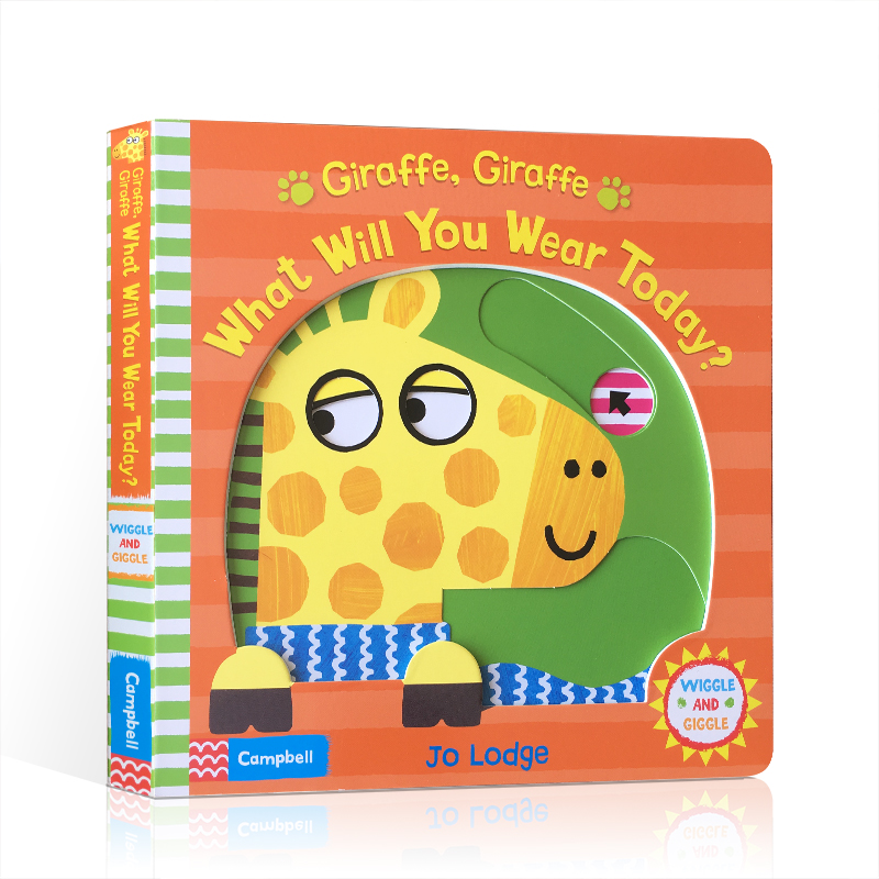 英文原版绘本 机关书 Wiggle and Giggle Giraffe What Will You Wear Today? 长颈鹿你今天穿的什么?