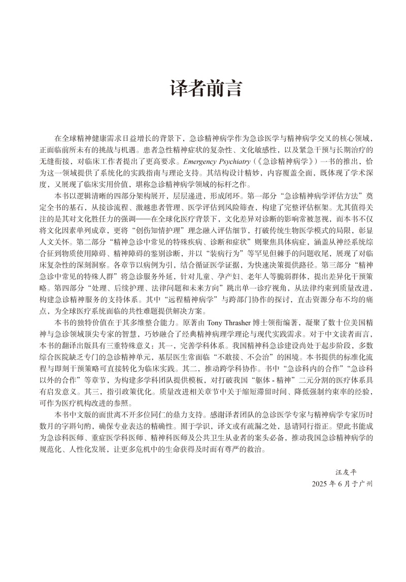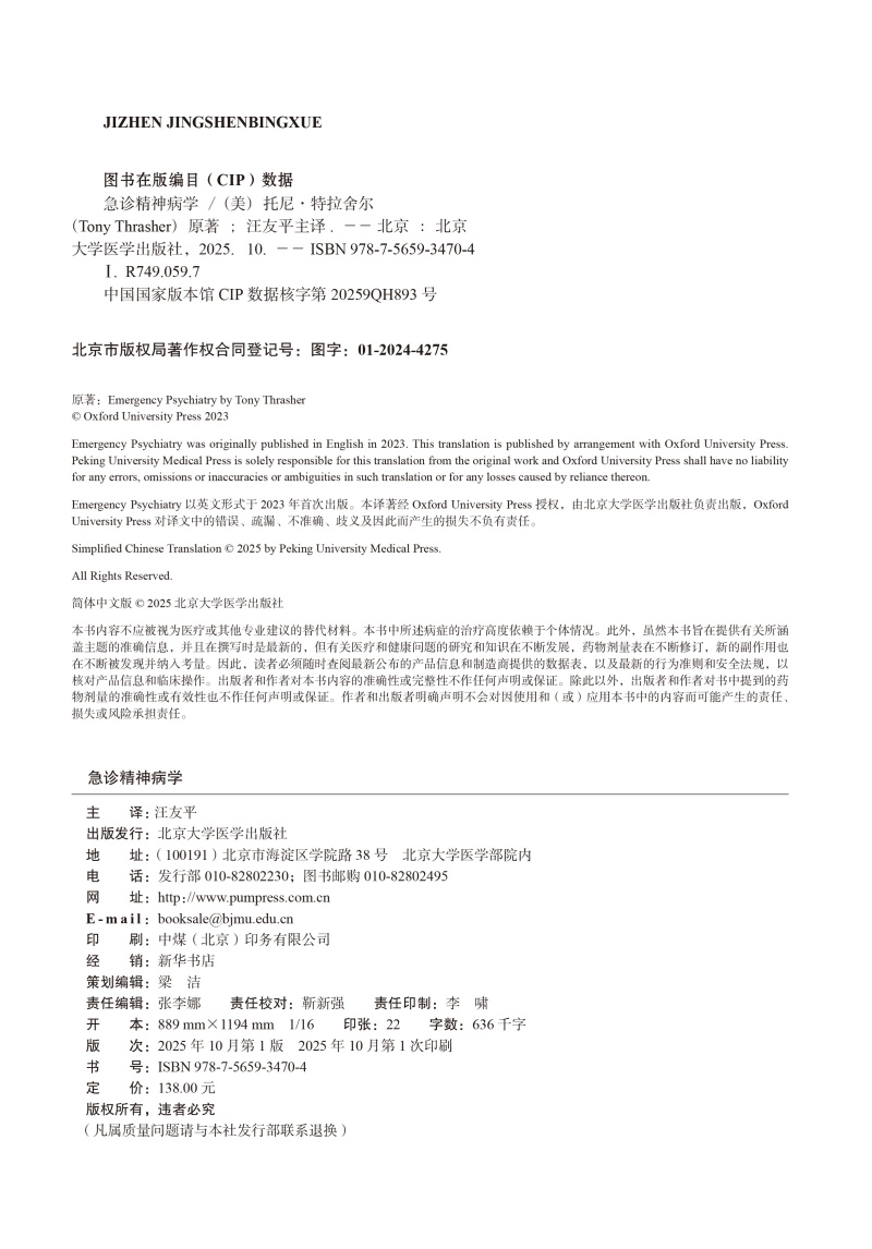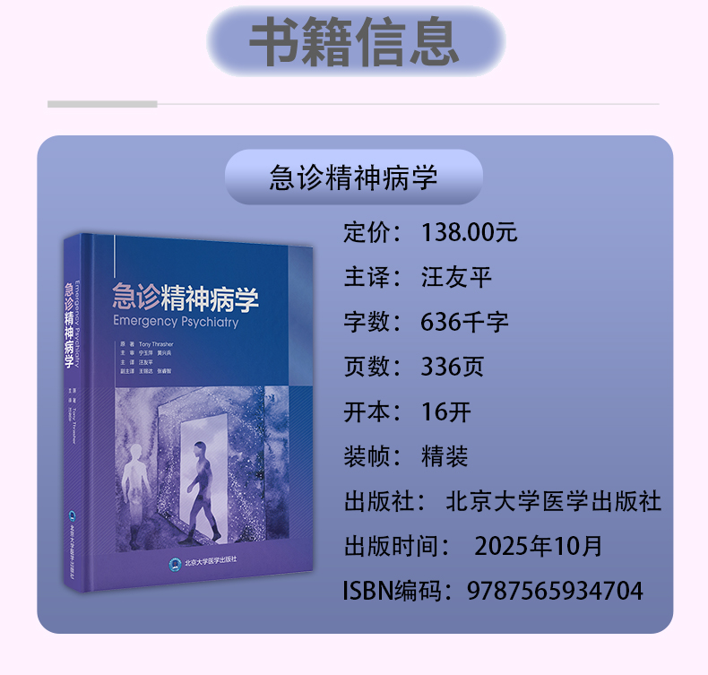急诊精神病学 汪友平 主译 系统阐述常见精神科急诊的标准化评估路径与应急处置方案等 精神病学与心理健康 北京大学医学出版社