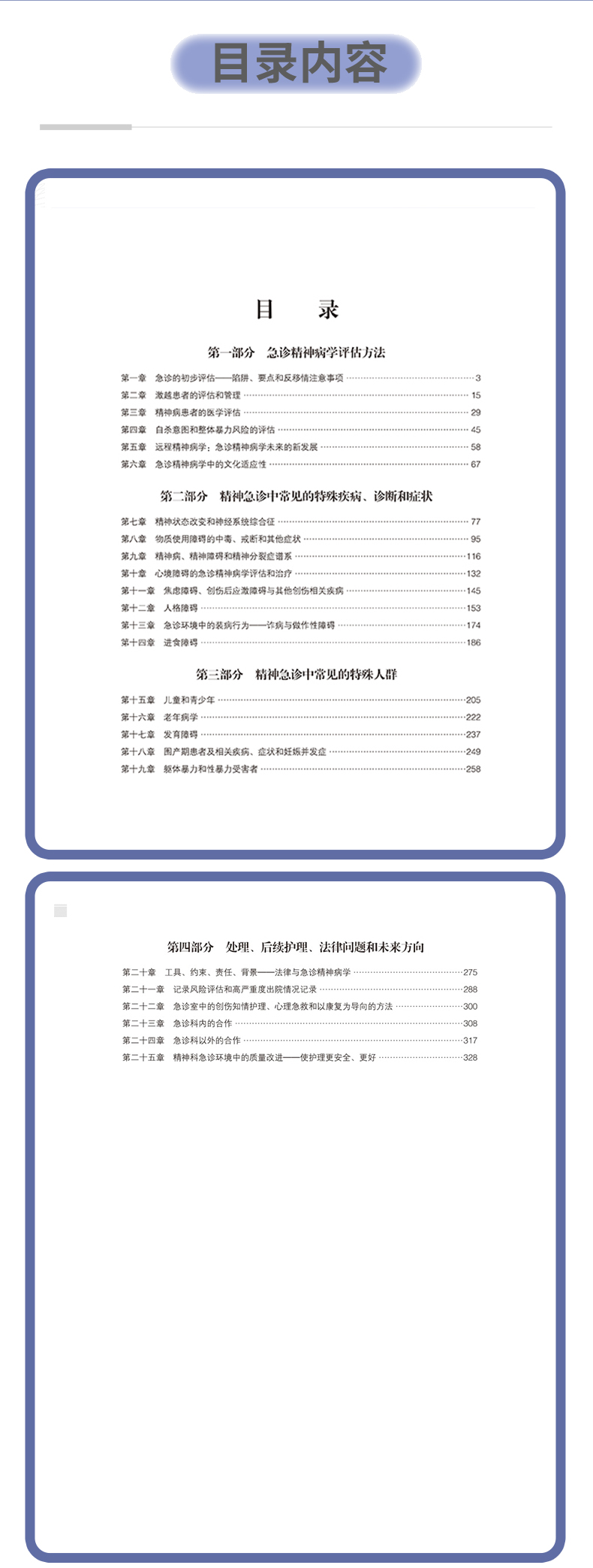 本书为EmergencyPsychiatry一书的译著,由广州医科大学附属脑科医院汪友平组织翻译。本书分为4个部分,共25章。第一部分奠定全书的基石,从接诊流程、激越患者管理、医学评估到风险筛查,构建了完整评估框架。第二部分则聚焦具体病症,涵盖从神经综合征到物质中毒、精神障碍的鉴别诊断。第三部分扩展了急诊服务的外延,针对儿童、孕产妇、老年人等脆弱群体,提出差异化干预策略。第四部分跳出单一诊疗视角,从法律约束到质量改进,构建急诊精神服务的支持体系。本书适合急诊科医师、重症医学科医师、精神科医师及公共卫生从业者等阅读参考。