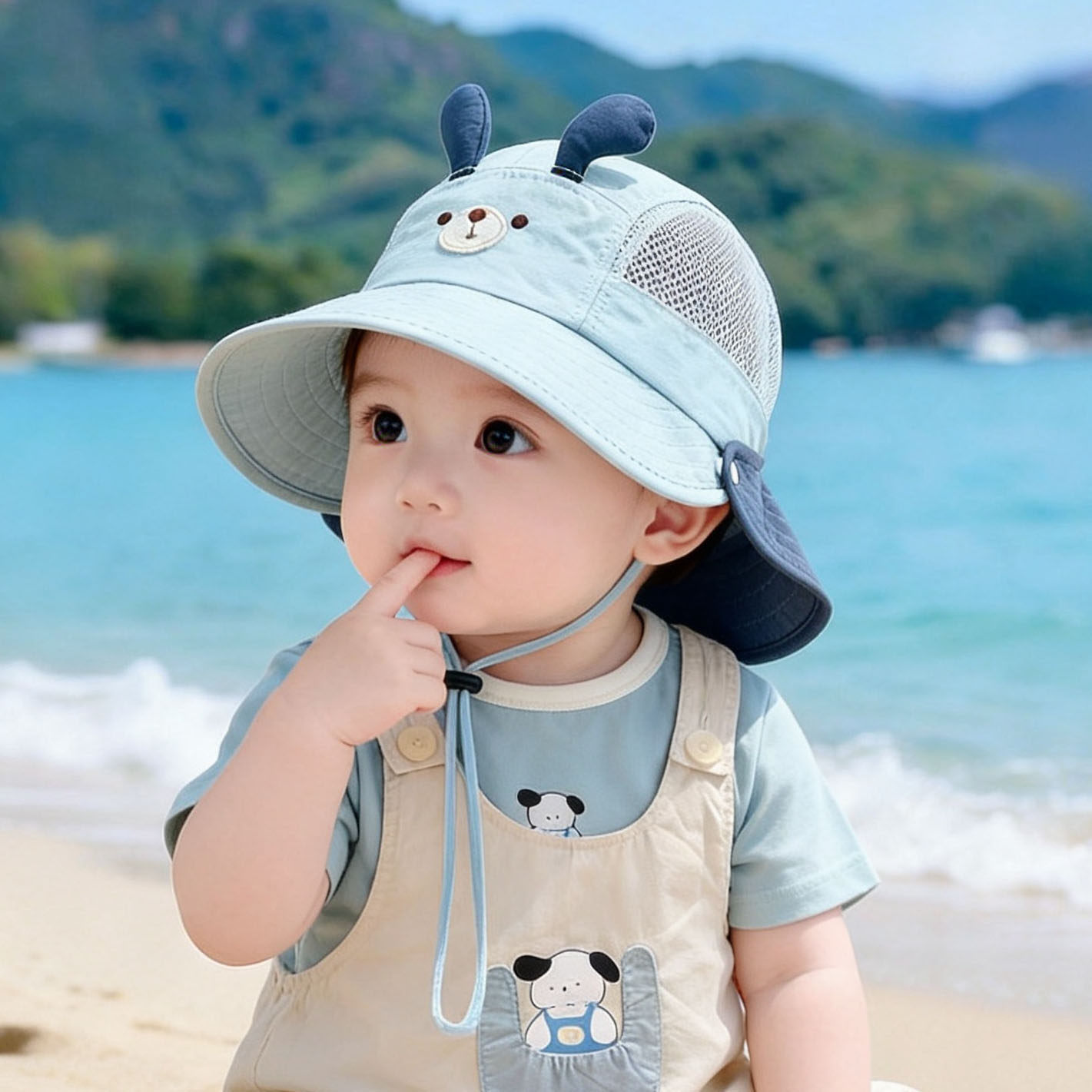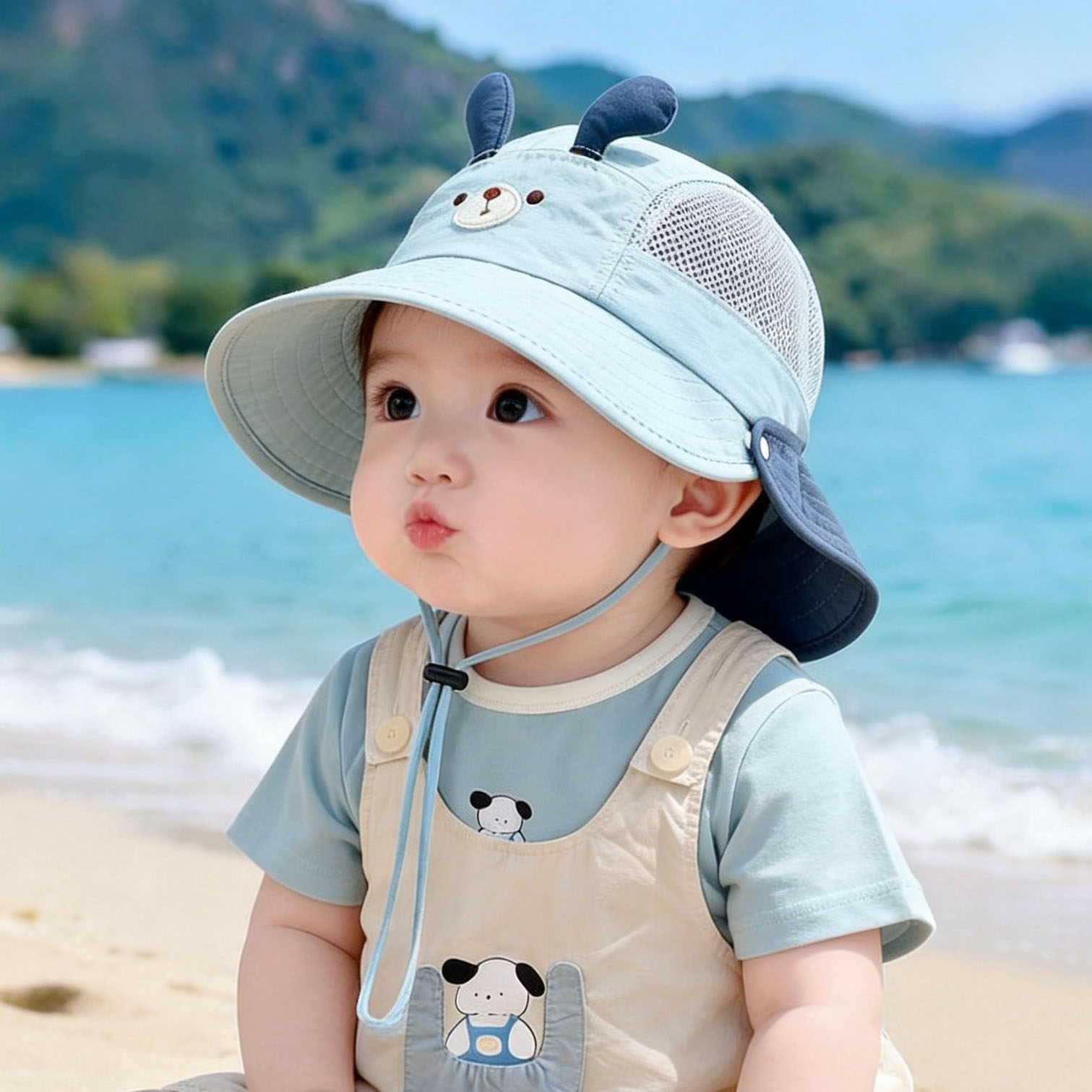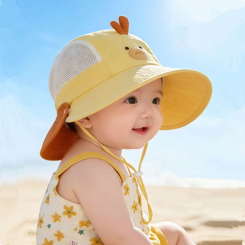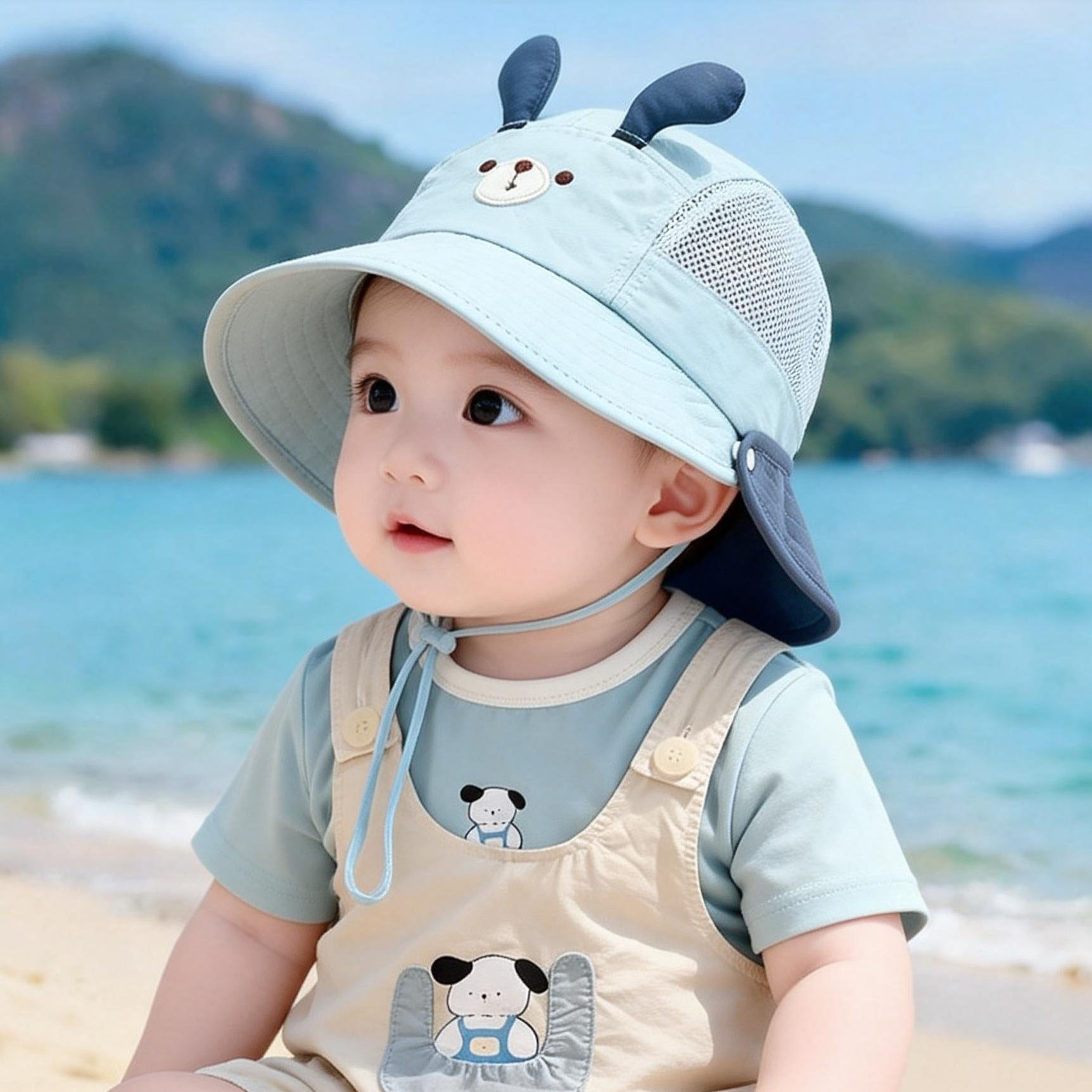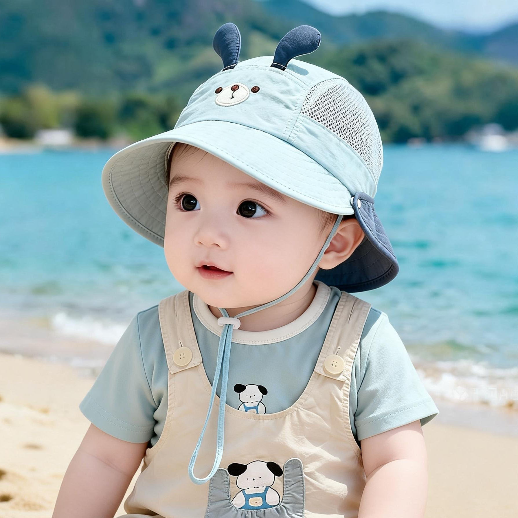 【轻薄透气不闷热、优质面料安全舒适】宝宝防晒帽春夏季婴幼儿遮阳渔夫帽大帽檐薄款可拆卸男女童太阳帽.TA