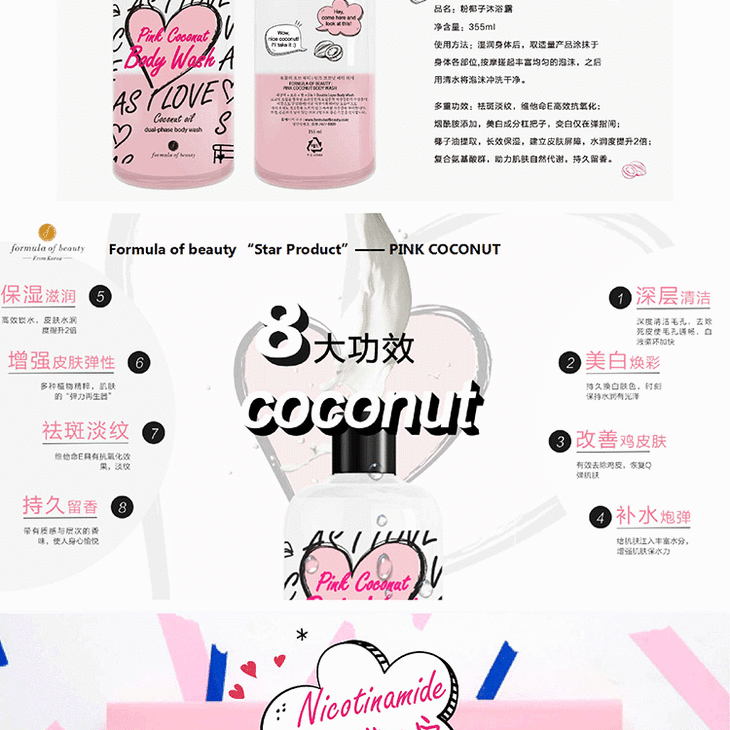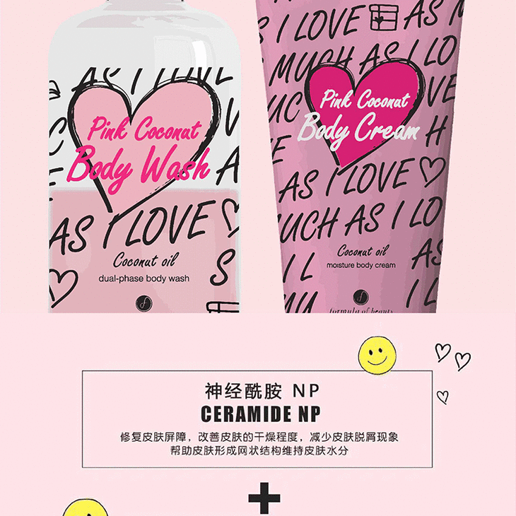 Formula of beauty 粉椰子烟酰胺沐浴露身体乳 深层清洁美白去鸡皮肤 锁水保湿祛斑淡纹