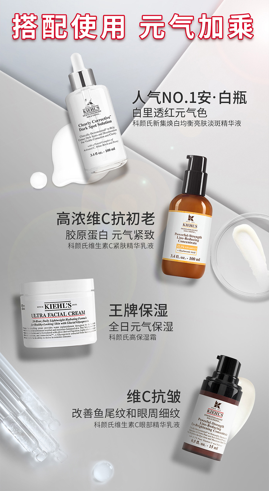 科颜氏Kiehls抗初老精华露元气弹 玻尿酸修护精华液 50ml