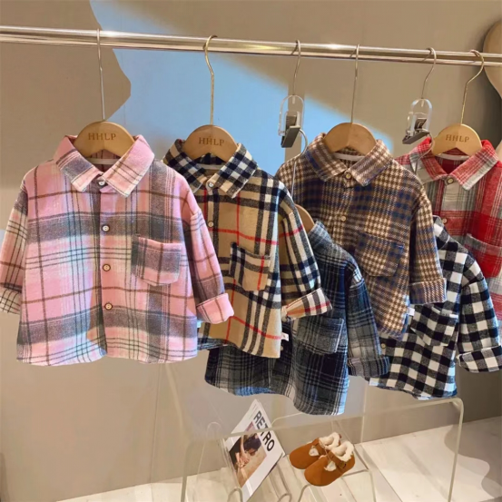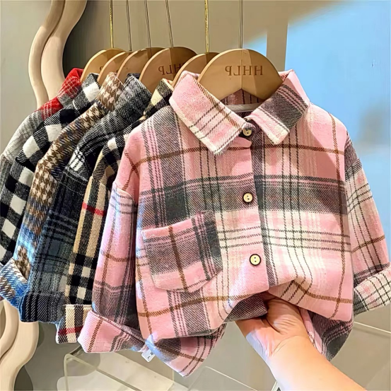 🌞!🌞【磨毛复古格子儿童翻领衬衫】✅作为单穿/内搭/小外套都可,✨轻松应对温差变化,🉑简洁时髦 ✅𝟏𝟎𝟎%纯棉,😎软糯有质感,🔥百搭格纹款,活力满满!