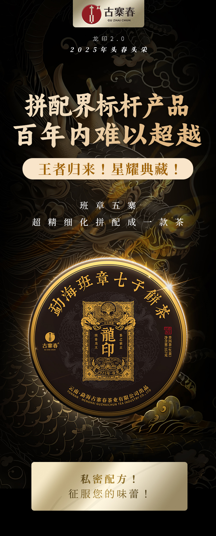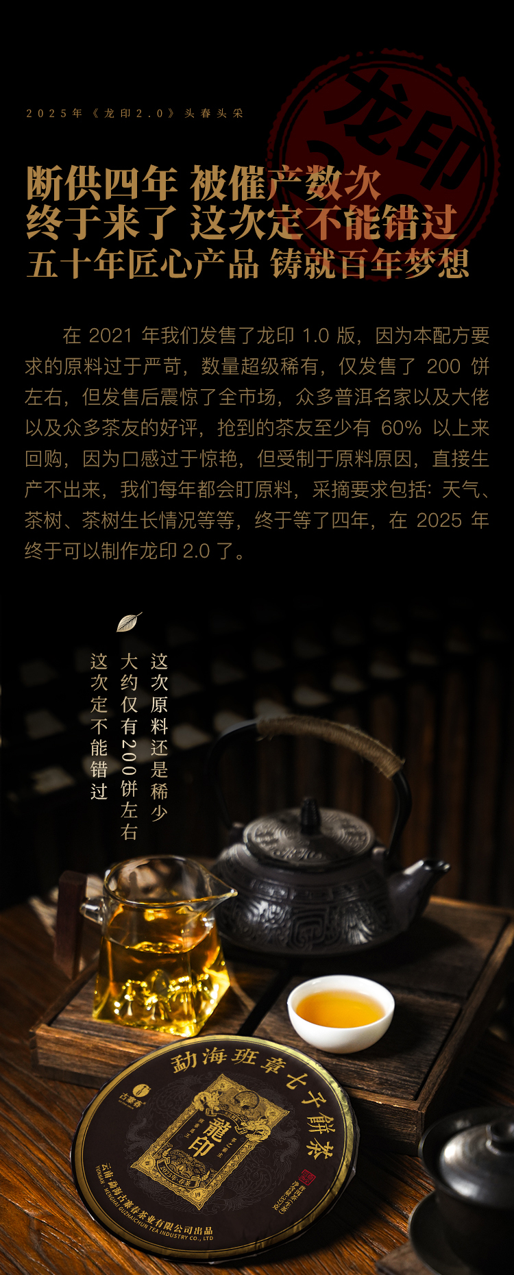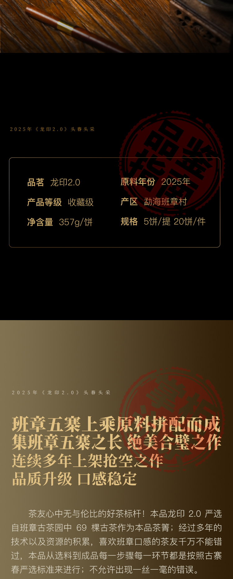11月15日中午12点【龙印】2025年古树春茶2.0版,拼配界标杆产品,百年内难以超越,征服您的味蕾,357克/饼