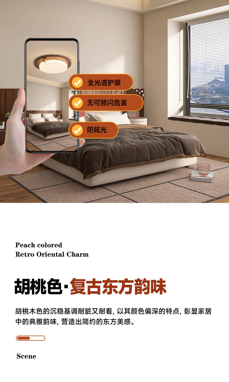 护眼复古卧室纹书房灯光谱侘寂风餐厅吸顶灯卧灯满天星胡桃木次全