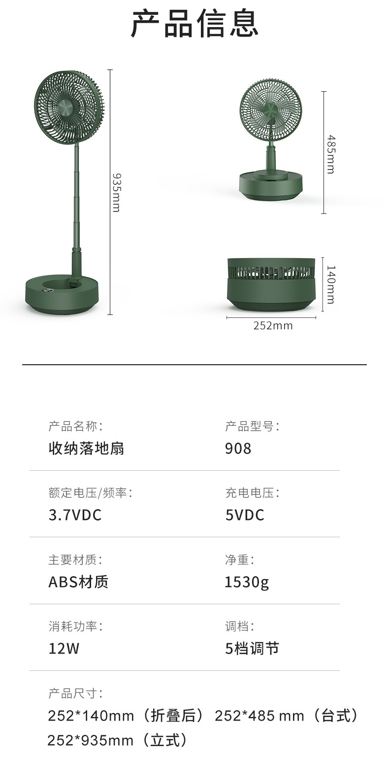 edon爱登悬浮收纳落地扇电风扇家用台式充电空气循环电扇伸缩折叠