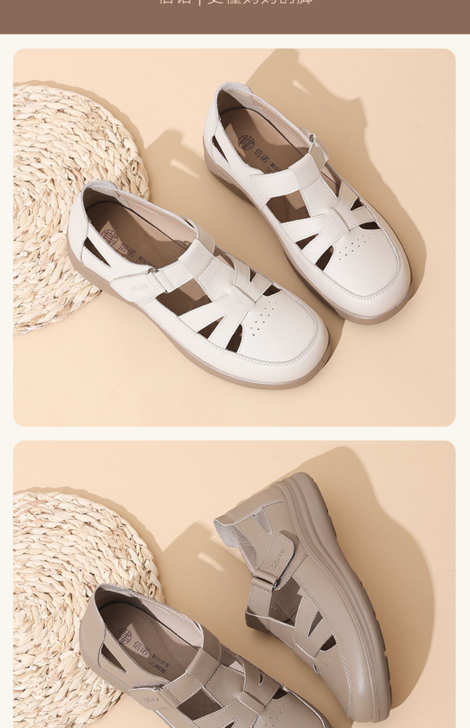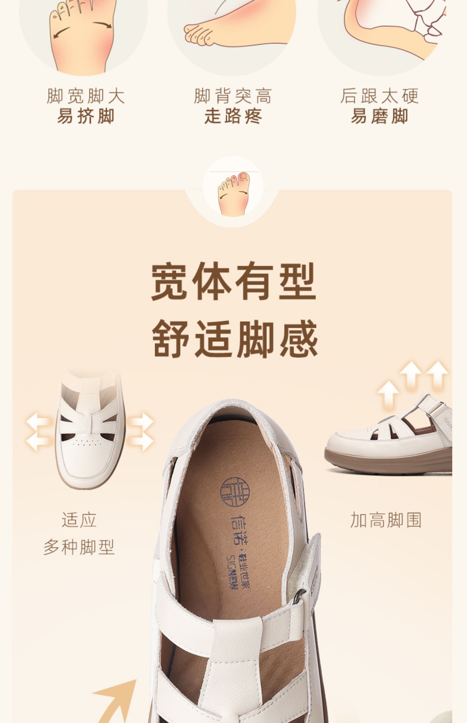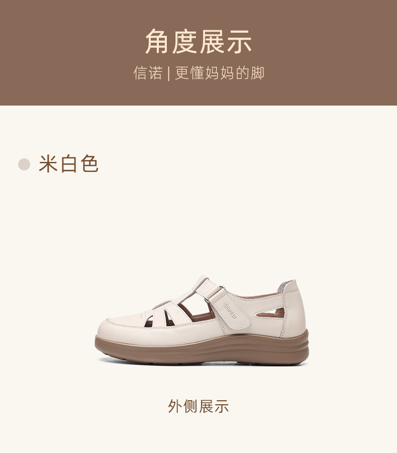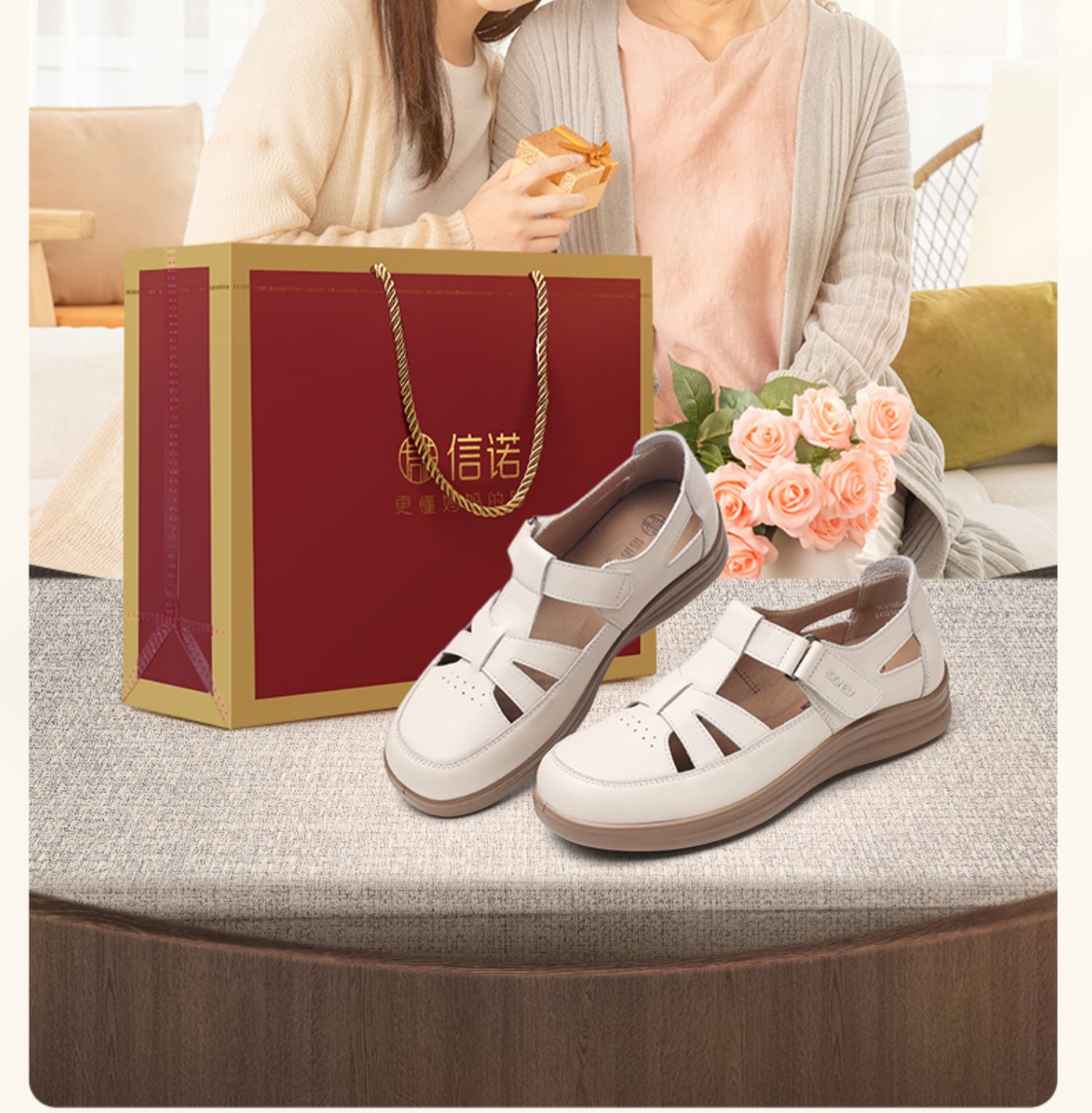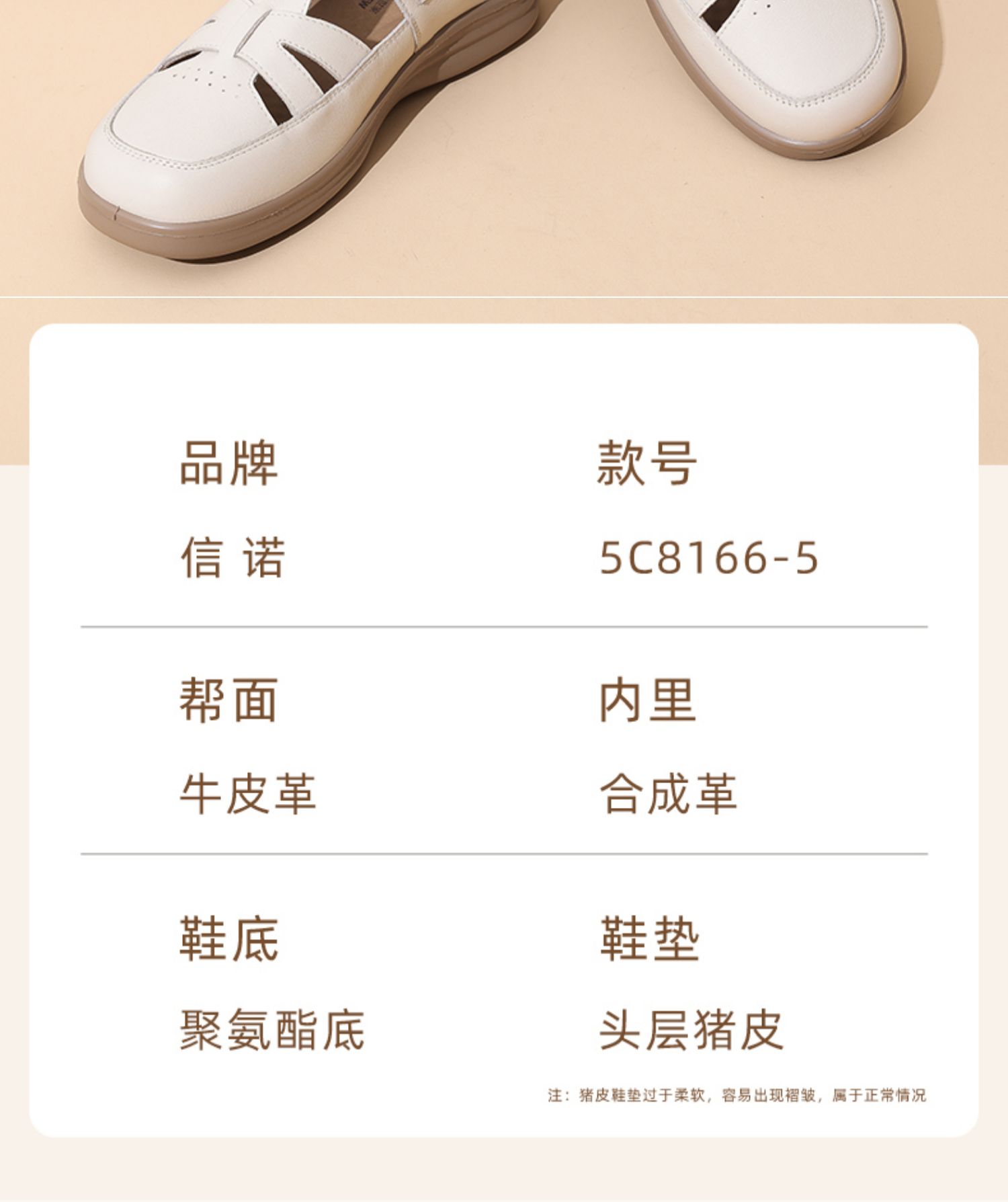 信诺真皮罗马凉鞋镂空包头女鞋夏季百搭透气凉鞋舒适软底妈妈鞋子5C8166-5