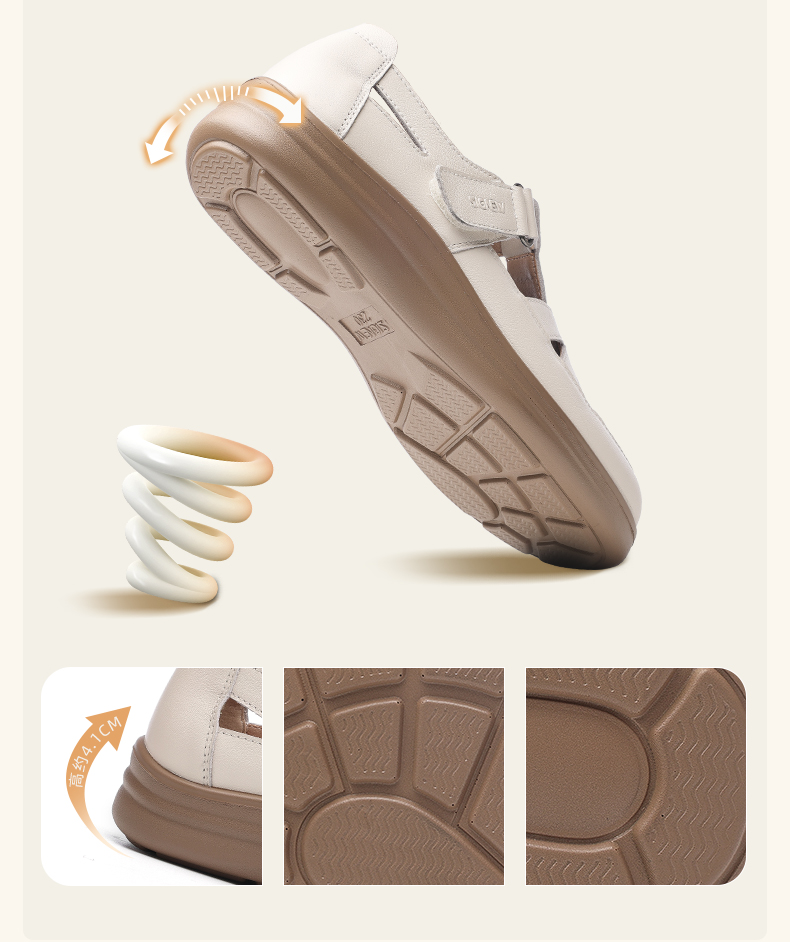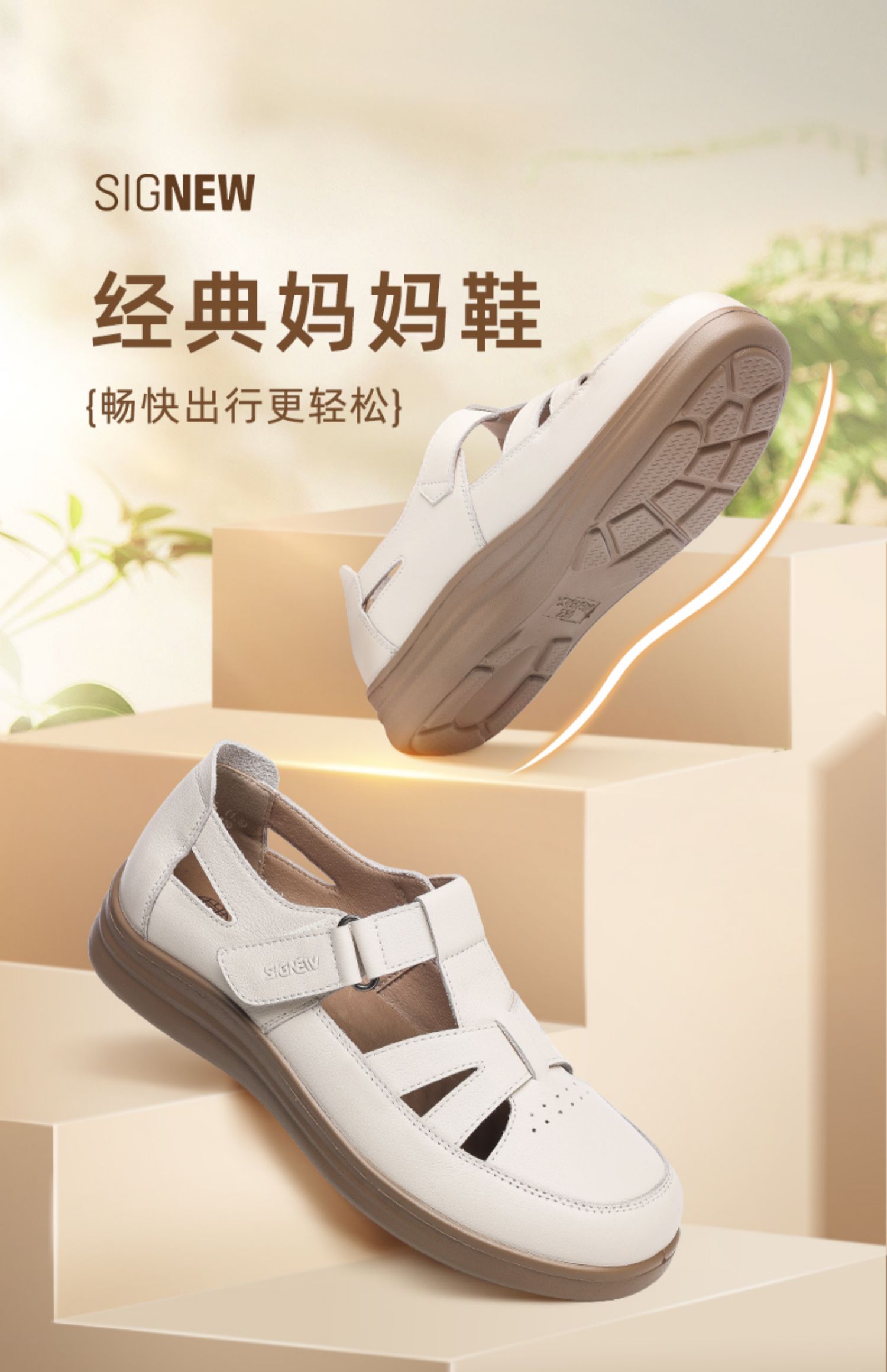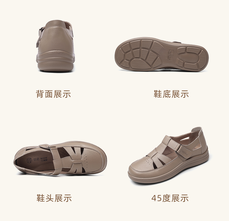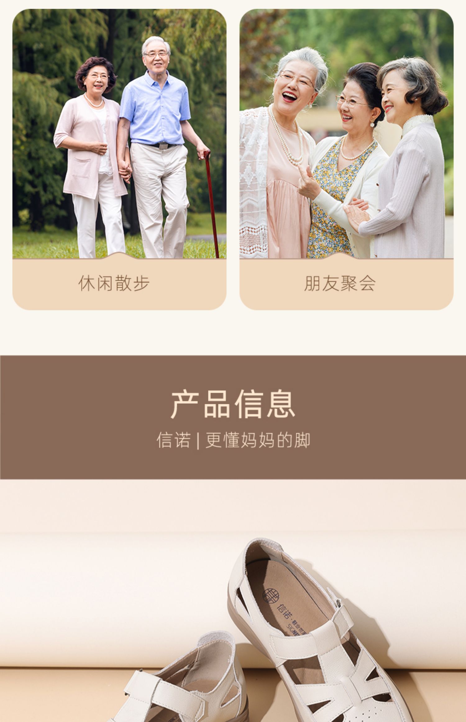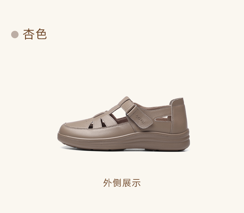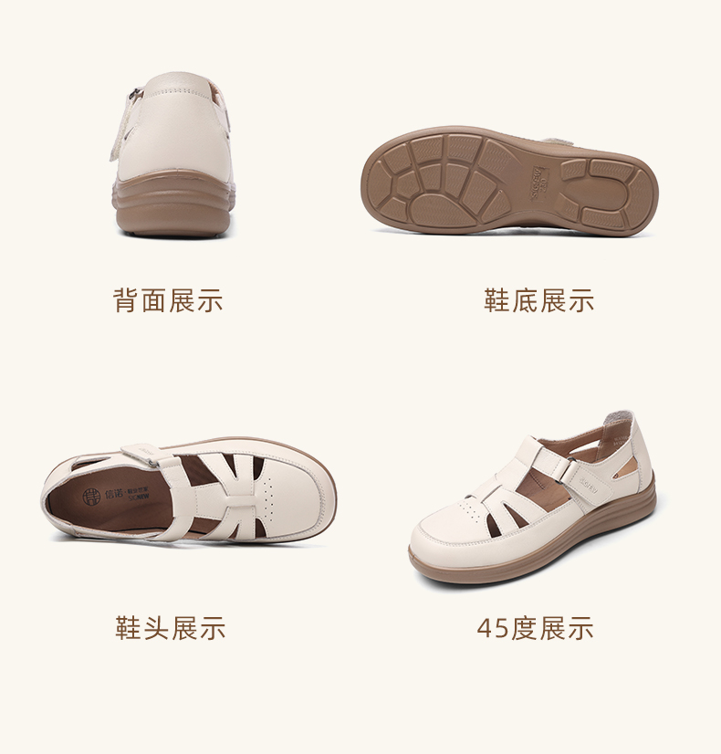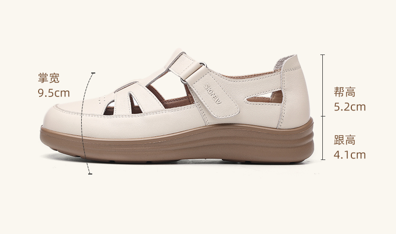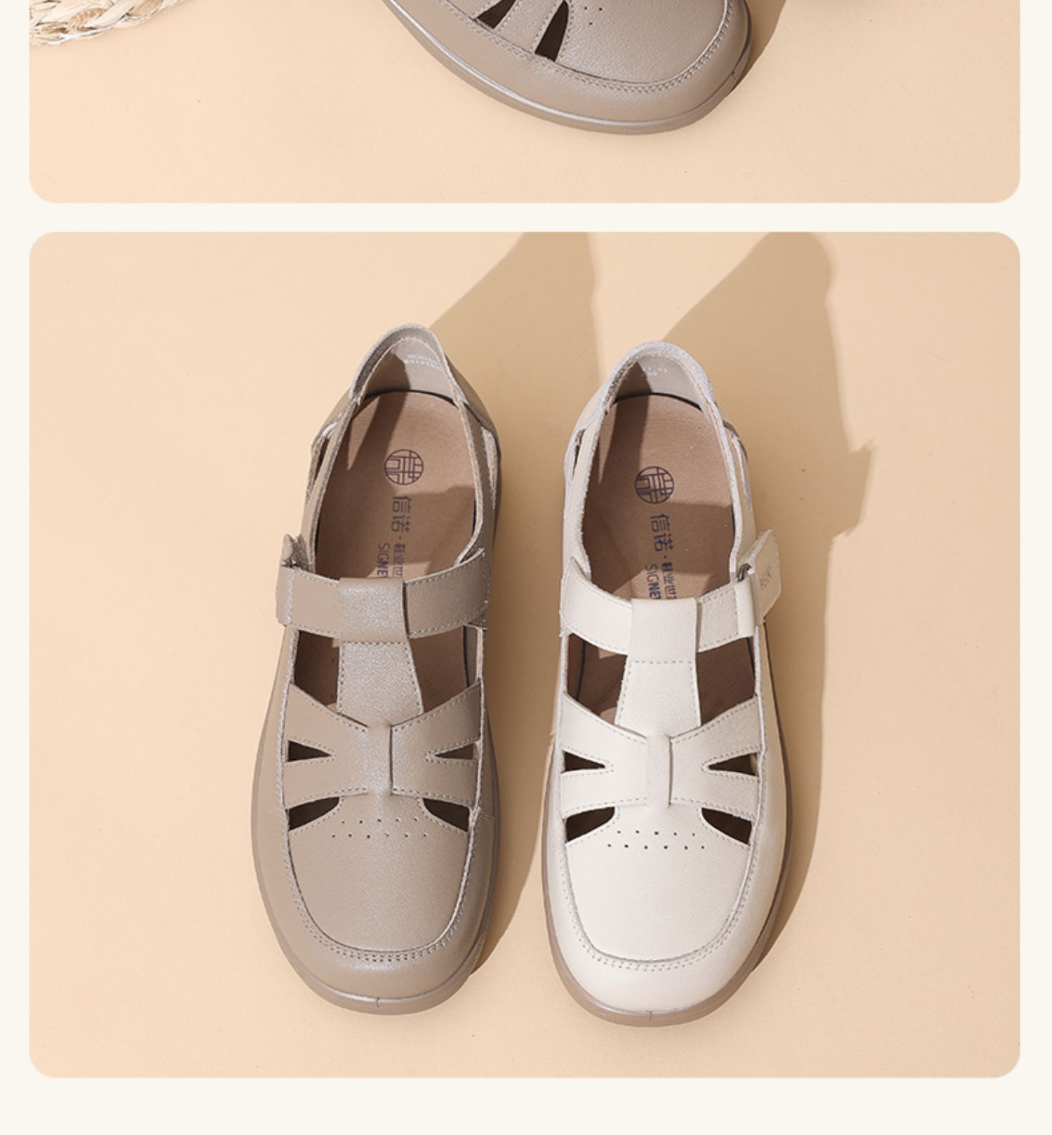 信诺真皮罗马凉鞋镂空包头女鞋夏季百搭透气凉鞋舒适软底妈妈鞋子5C8166-5