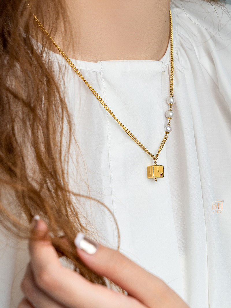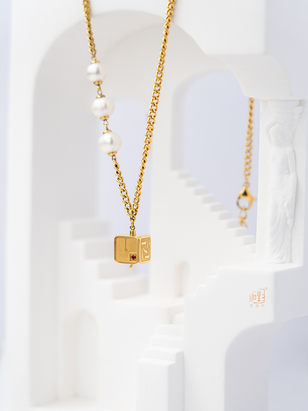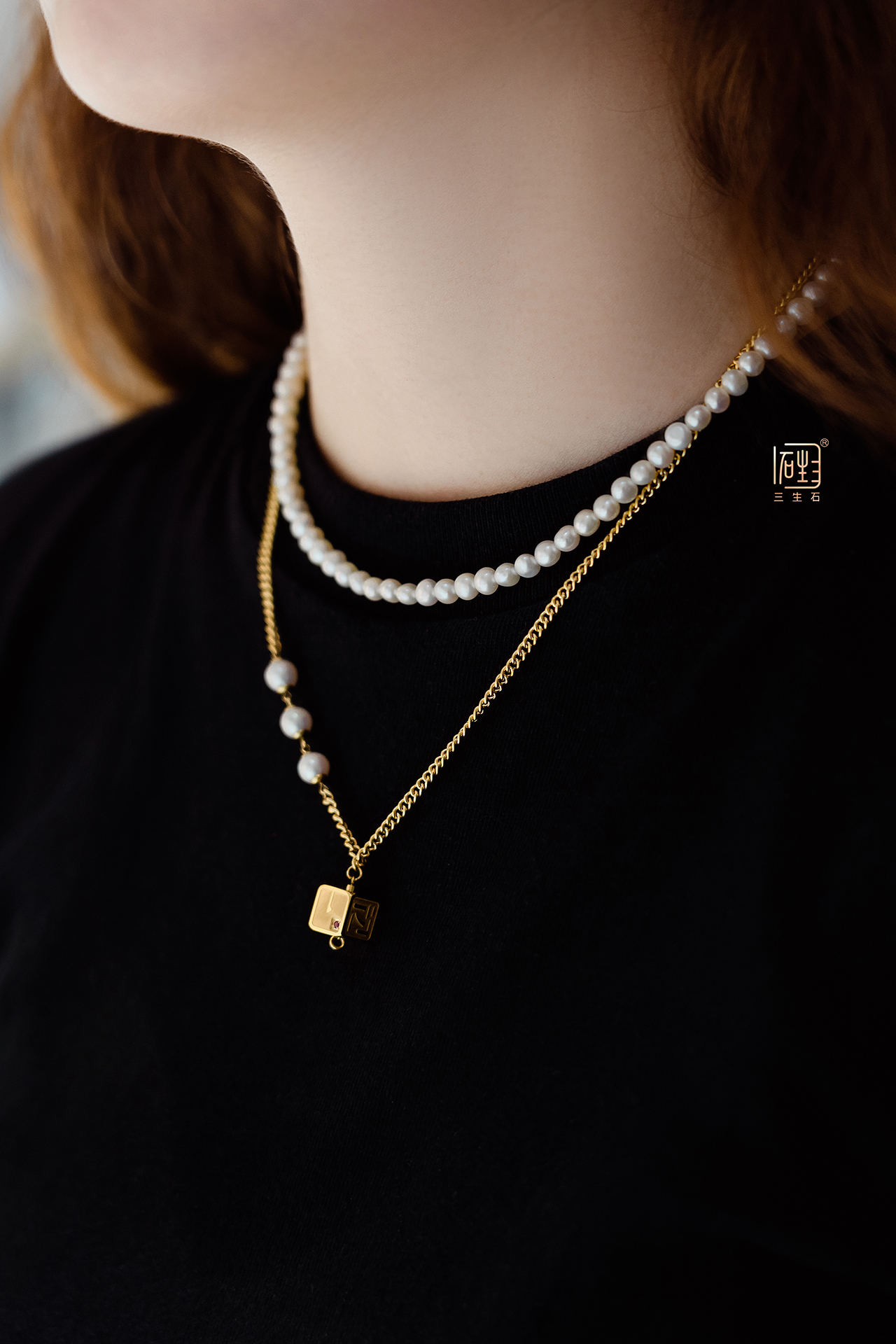 三生无限•红宝石珍珠多用项链+本色圆珍珠项链套组