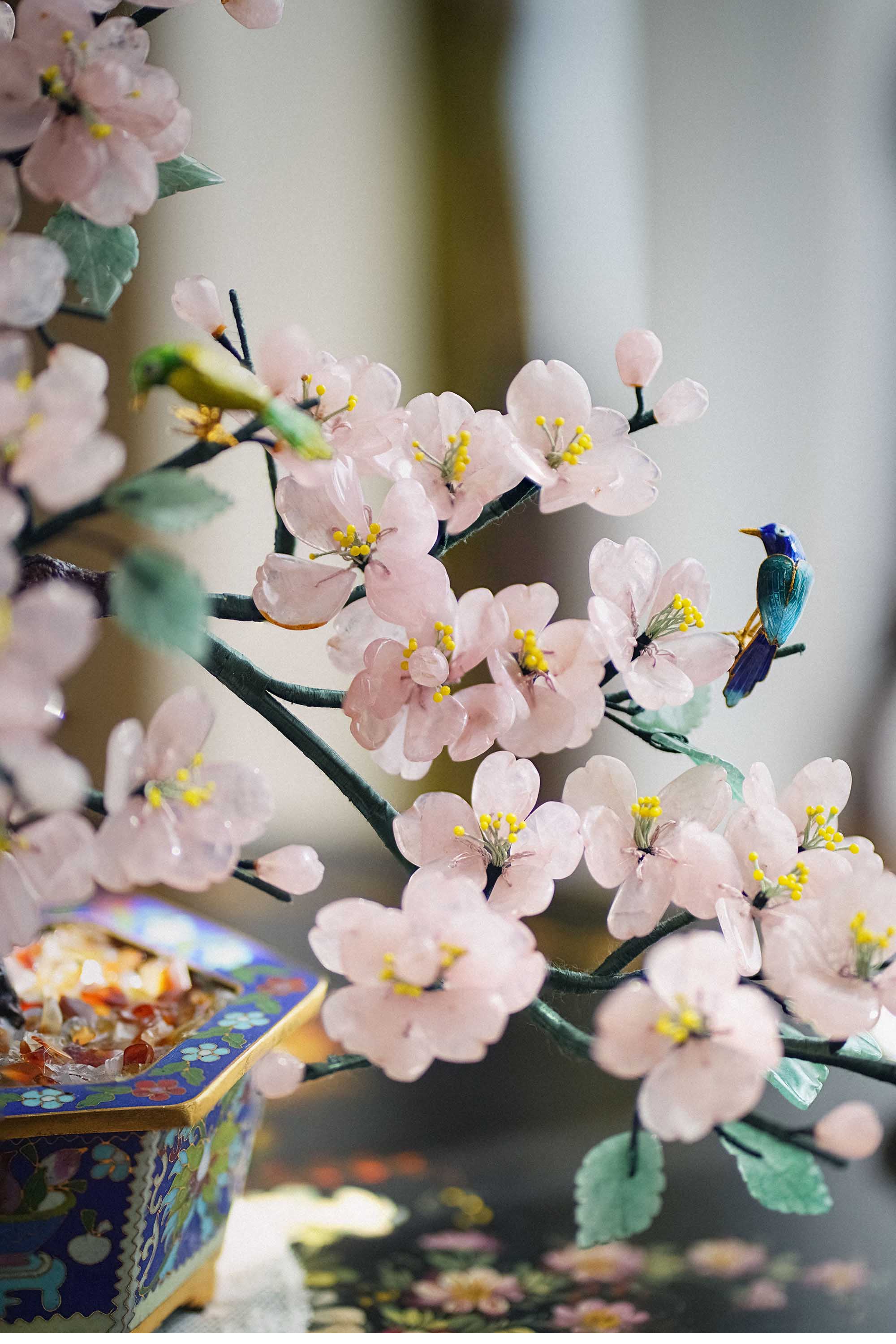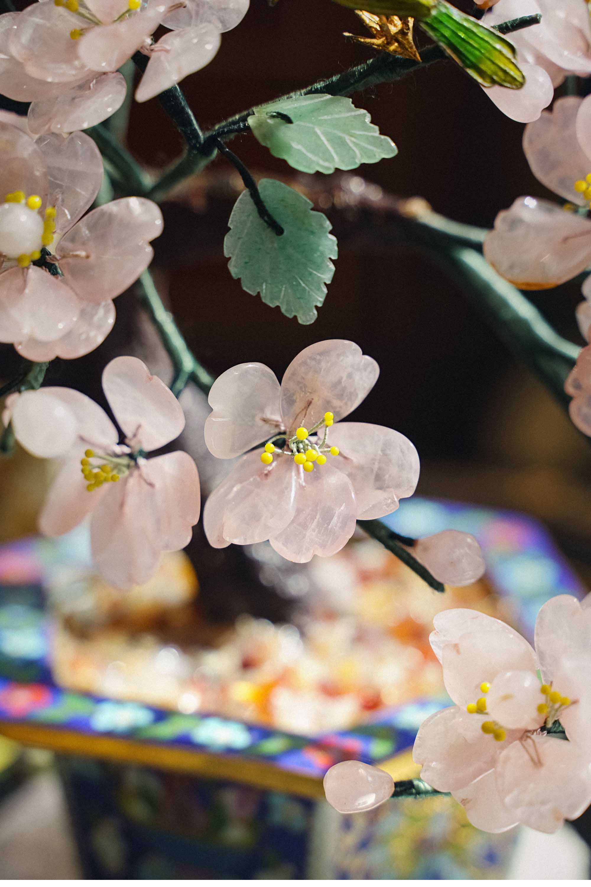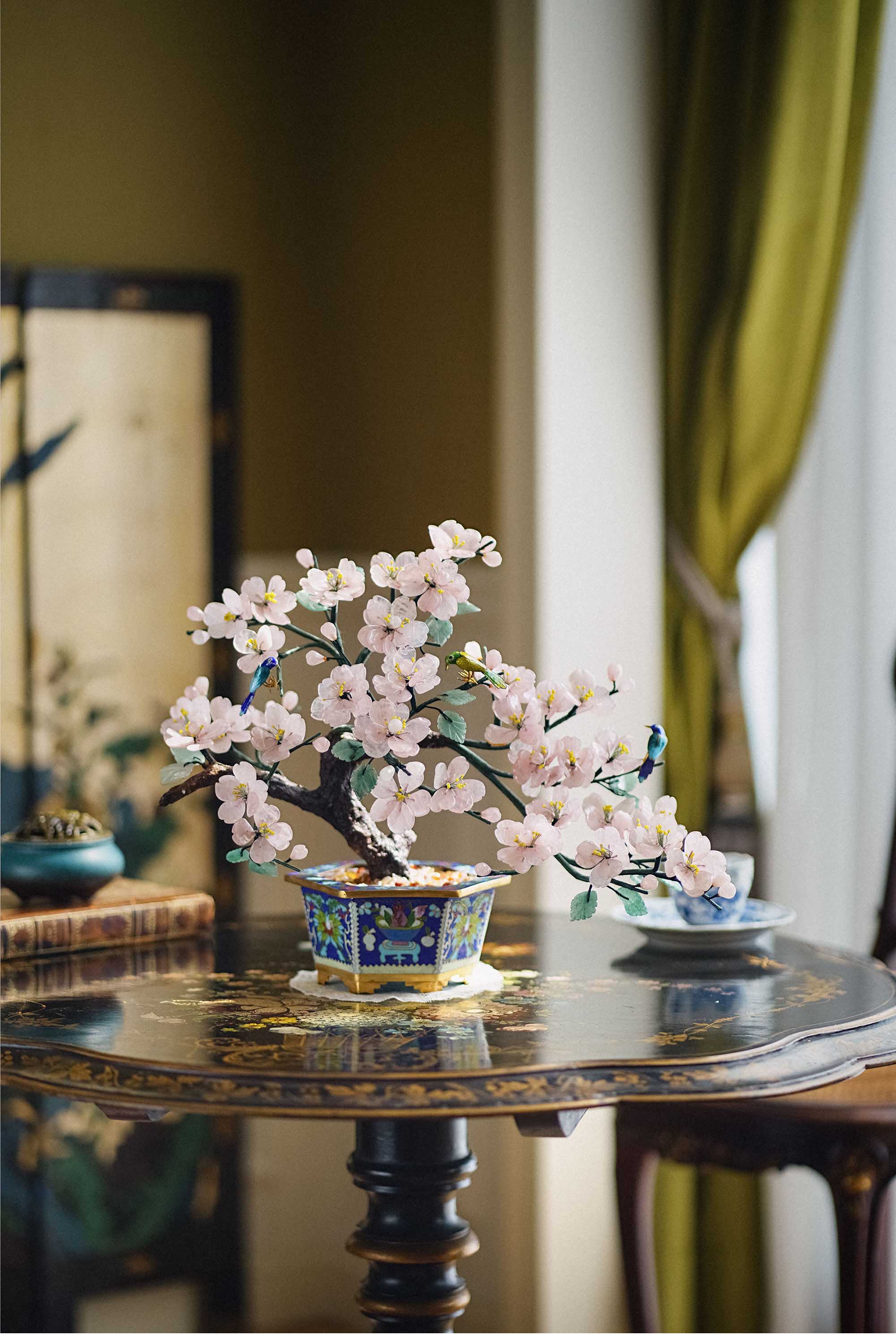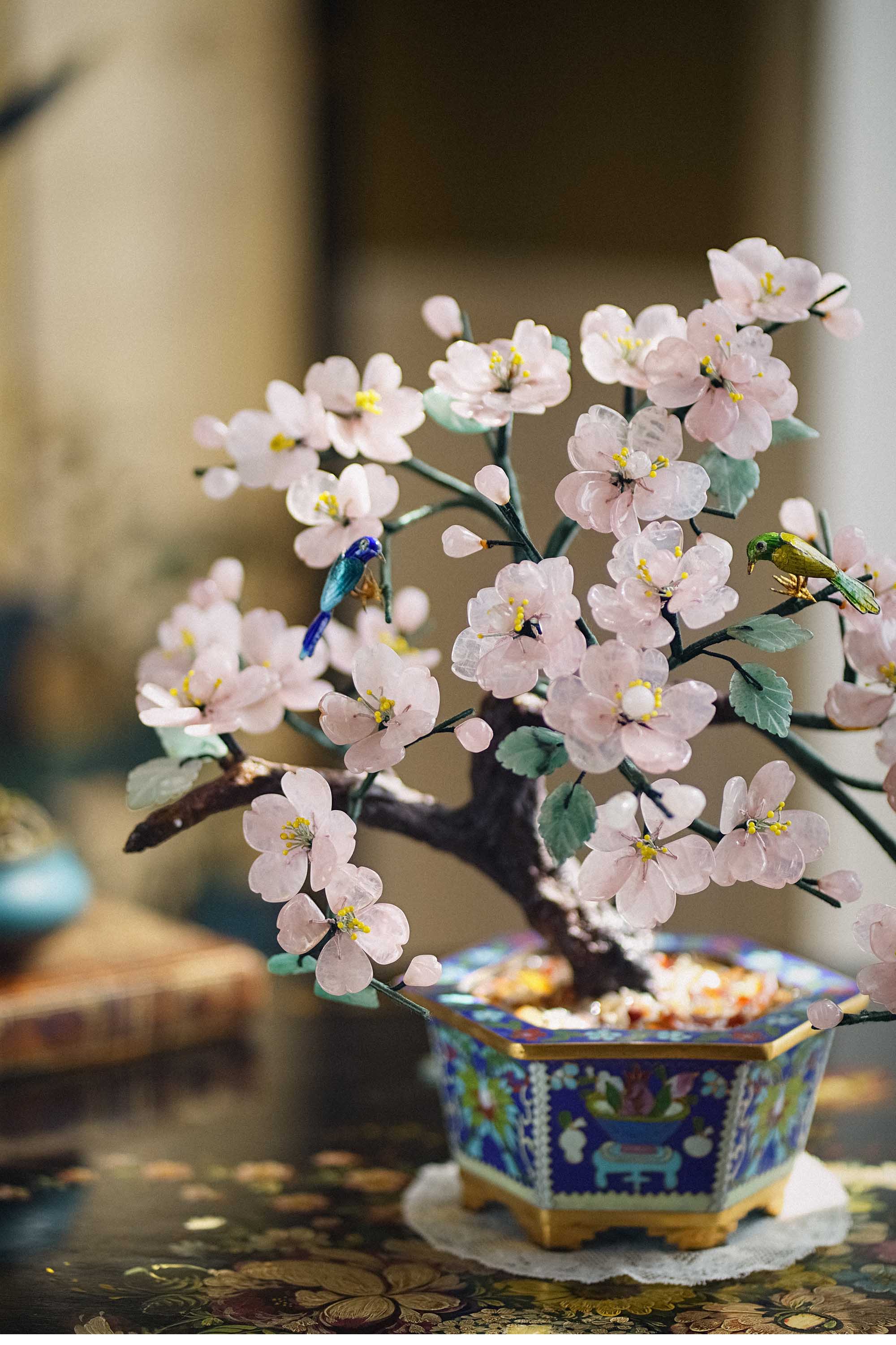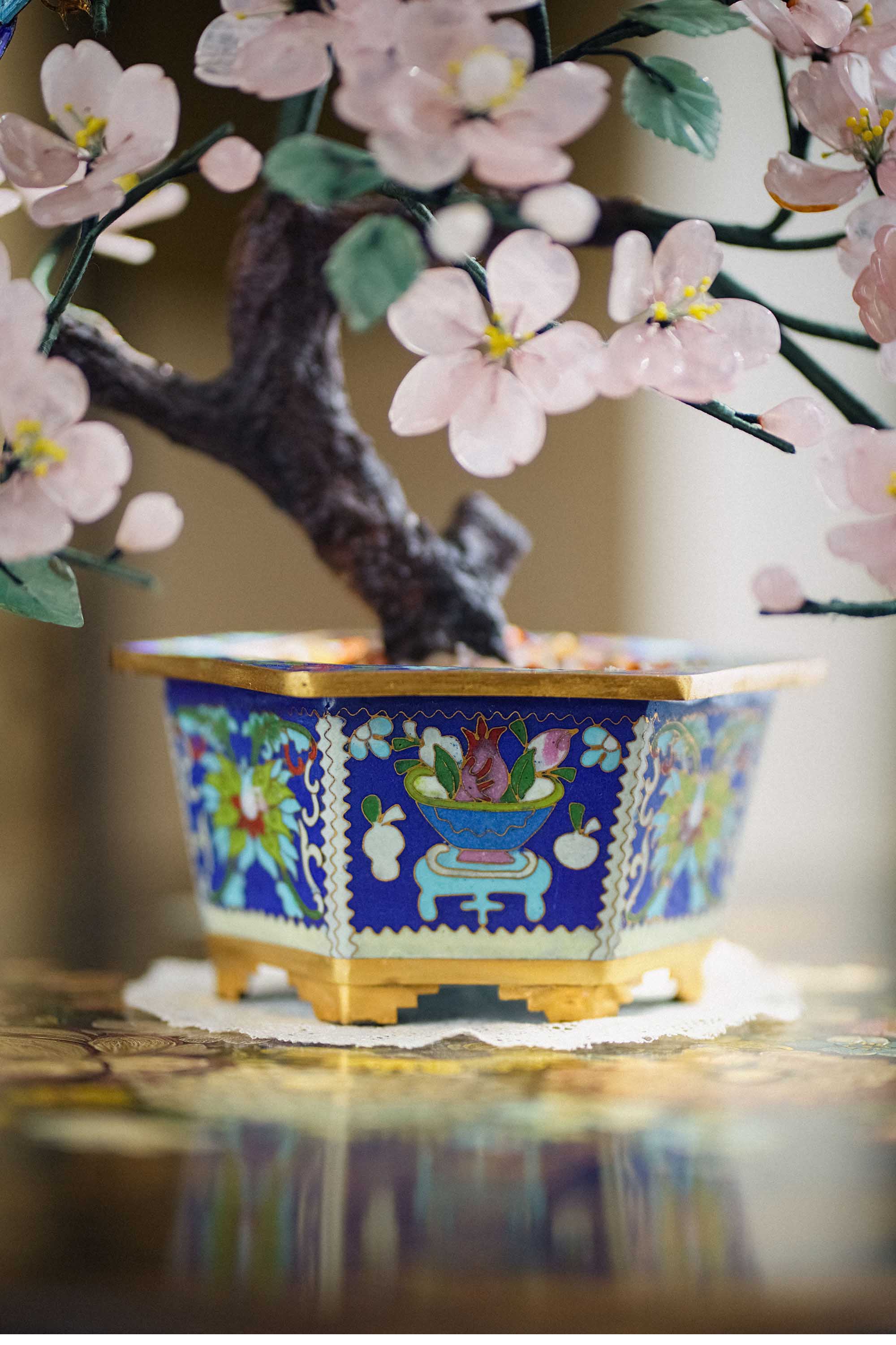 20世纪中国创汇时期出品博古纹景泰蓝盆装饰「海棠花」珍宝像生盆景