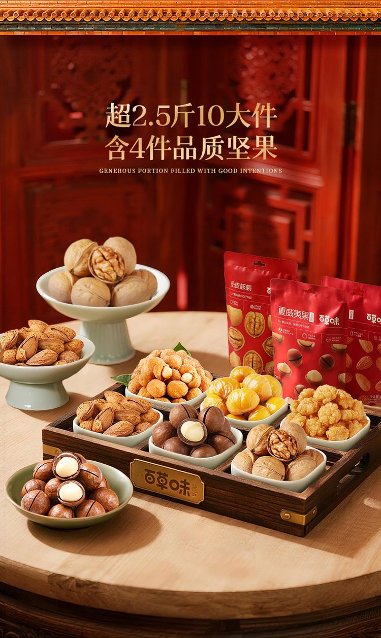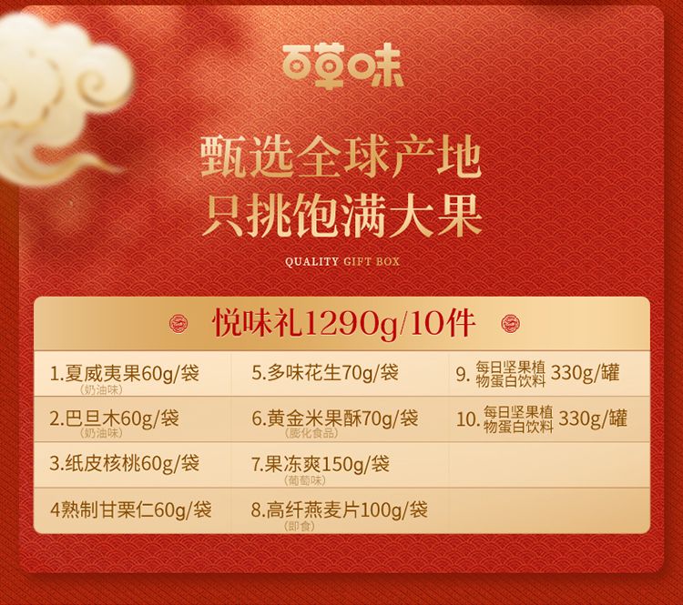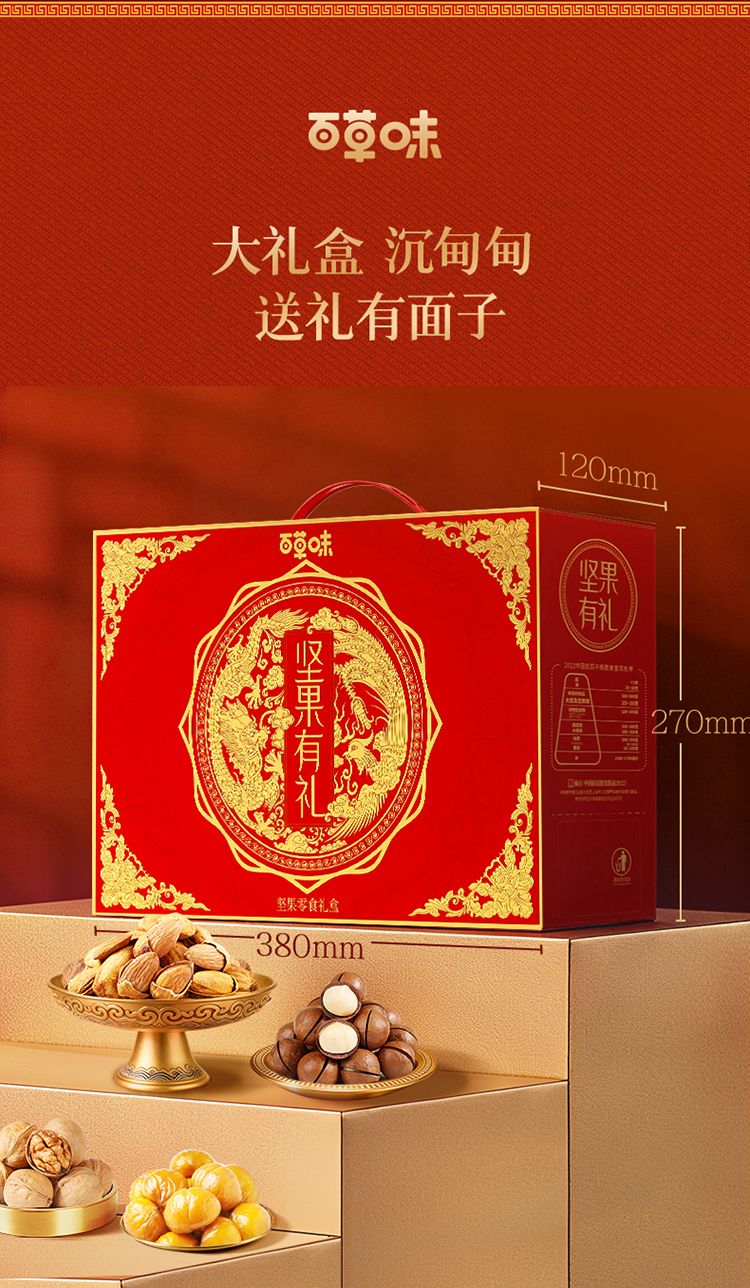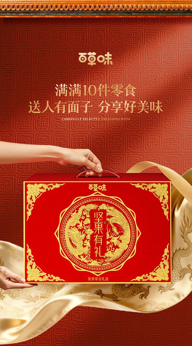 【159元4箱,到手40件】【百草味】年货坚果礼盒1290g*4盒(悦味礼)-FF