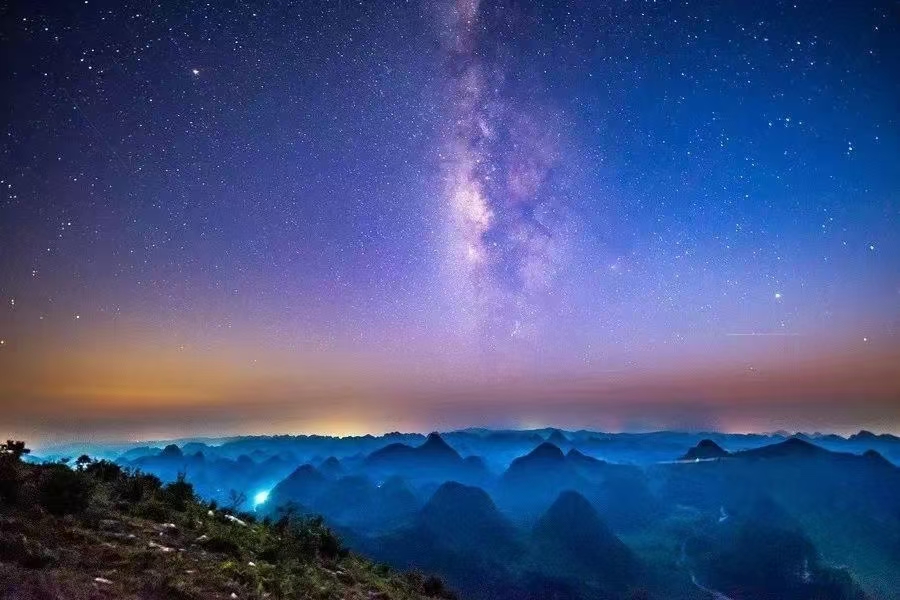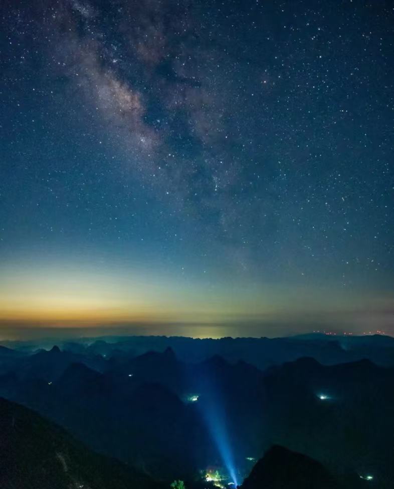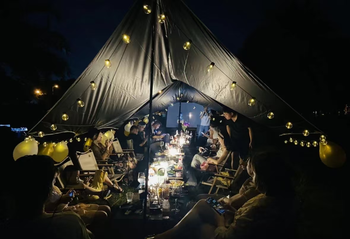 在营地露营晚餐,洗澡,晚上看流星雨。