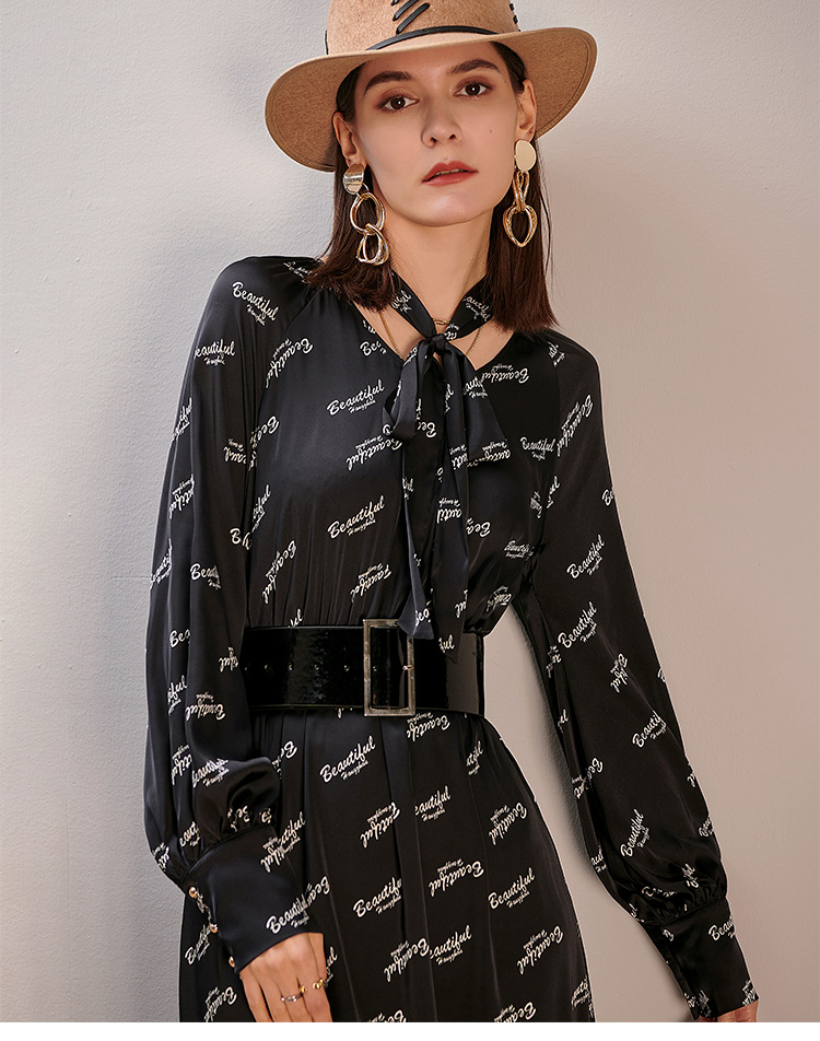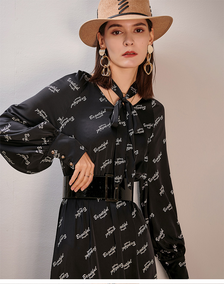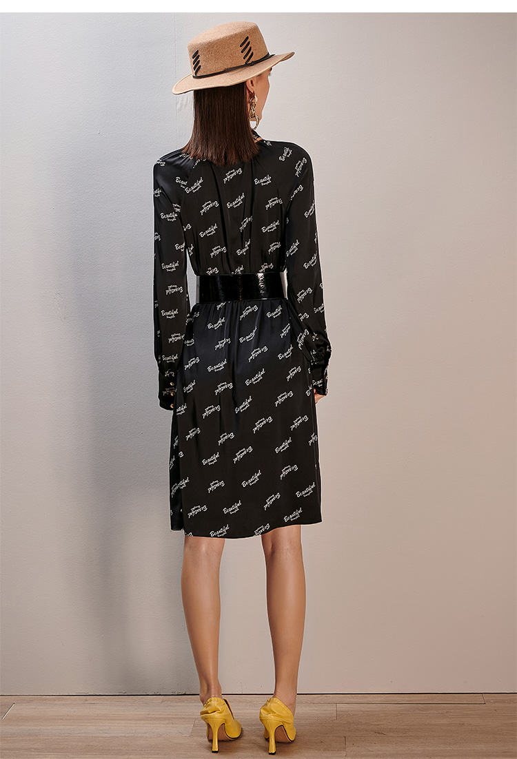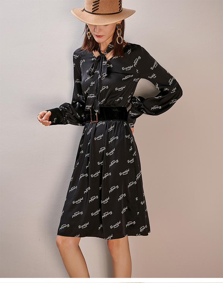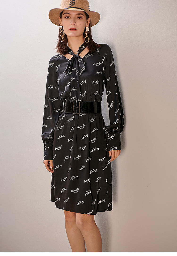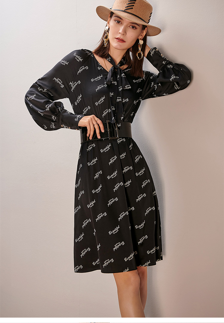 芳外春季新品休闲时尚淑女弹力灯笼袖连衣裙女