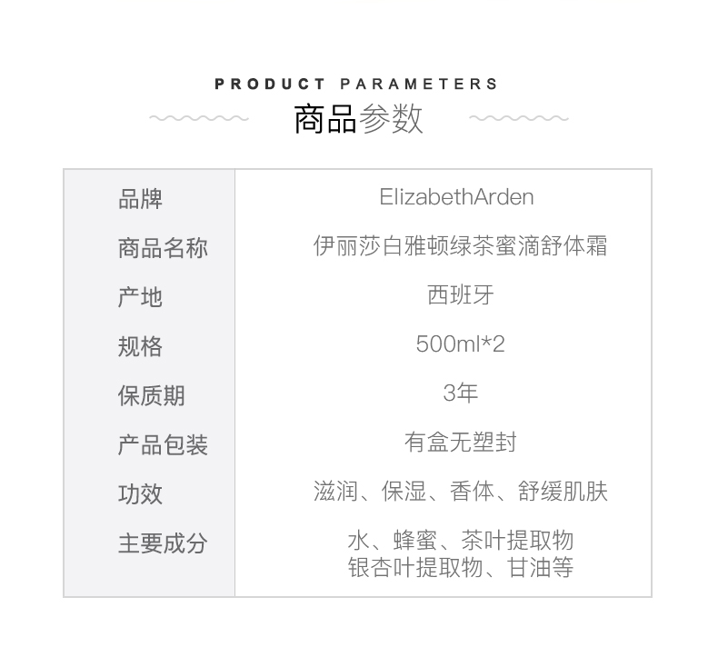 【中欧班列精选】 美国 ElizabethArden 雅顿绿茶蜂蜜身体乳500ml LPY