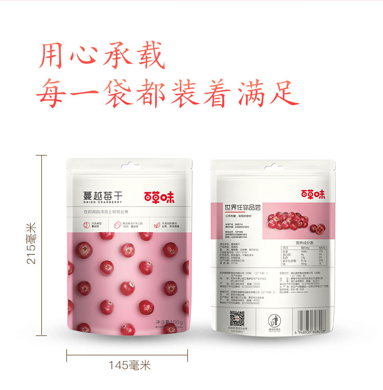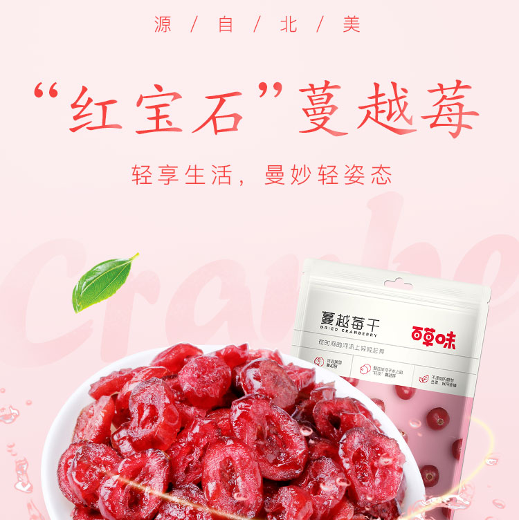 百草味 蔓越莓干100g/袋 蜜饯果干零食红宝石果肉果脯酸甜开胃休闲食品