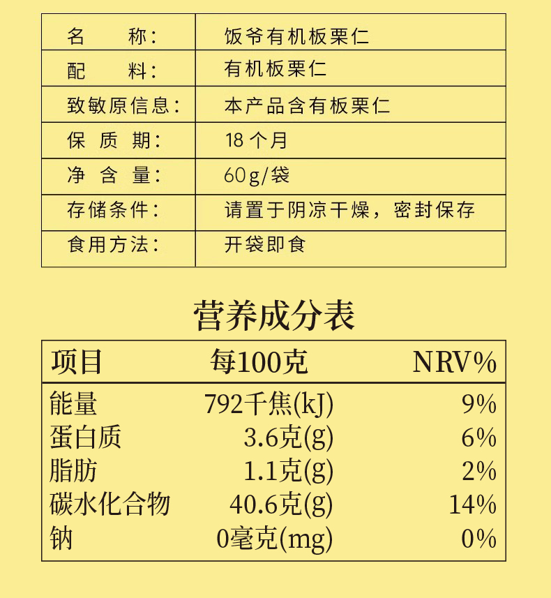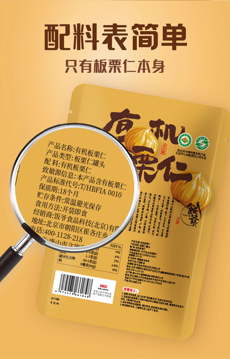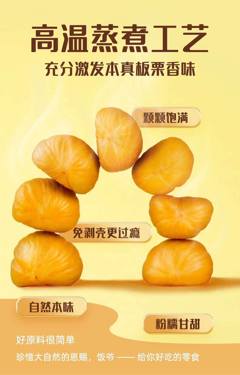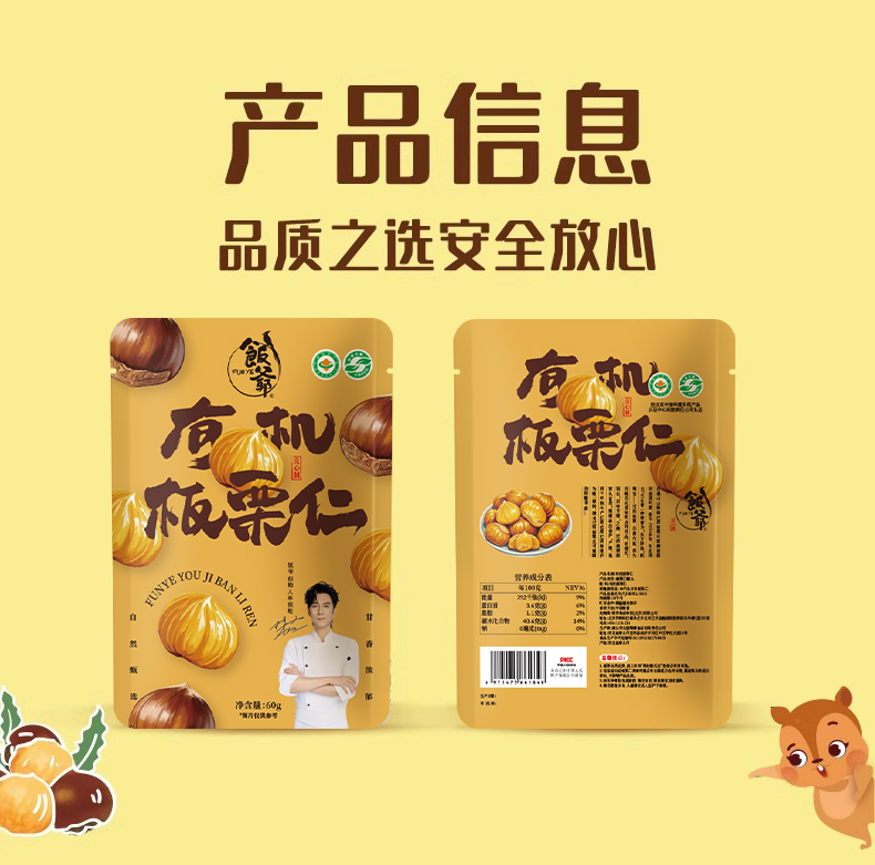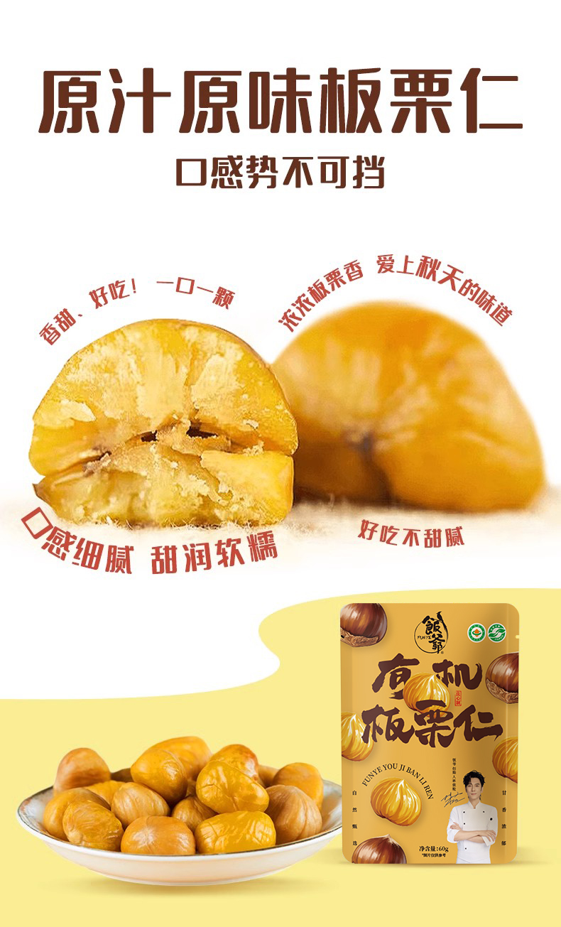 饭爷新品软糯有机迁西板栗仁60g*8袋迁西即食零食新鲜栗子仁
