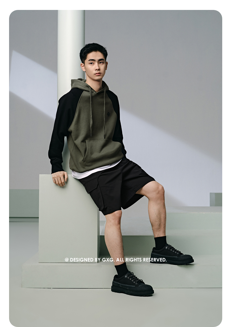 GXG男装 连帽卫衣字母绣花上衣双色长袖内搭 2025秋季新品