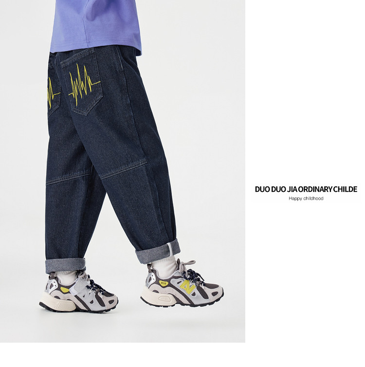 【件件底价,童装双倍积分】多多家男童牛仔裤春装2026春秋新款儿童男孩刺绣休闲洋气直筒裤子11559