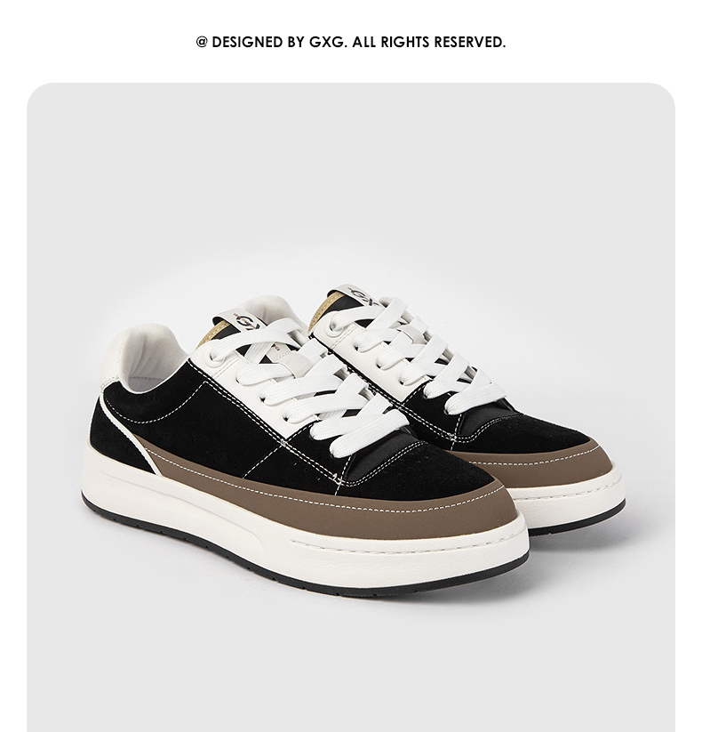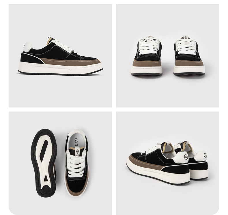 GXG通勤男鞋拼接厚底牛皮板鞋百搭休闲鞋