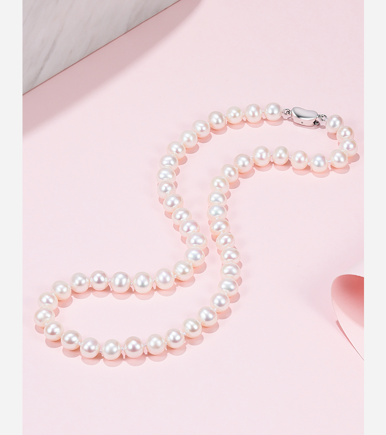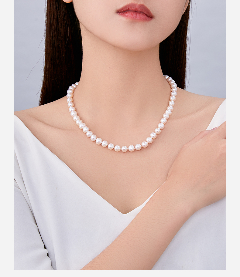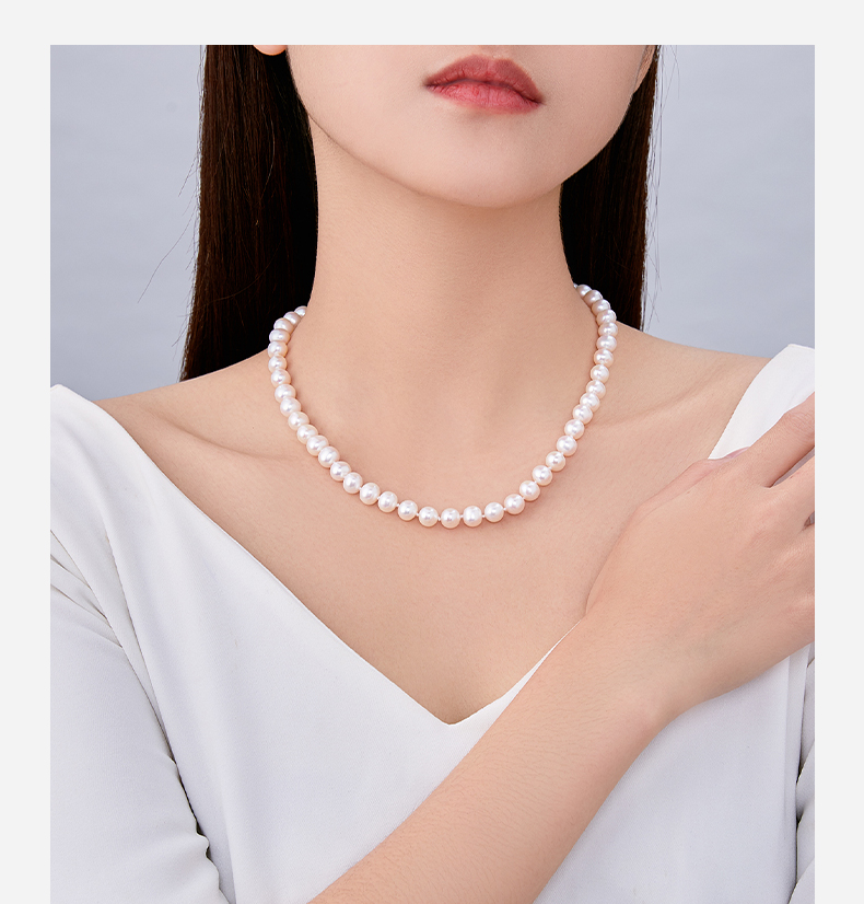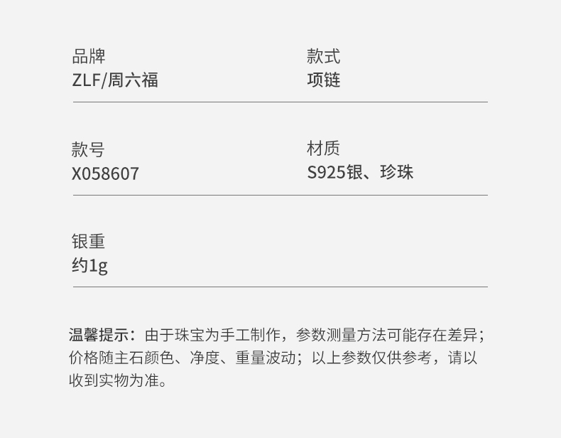 周六福珍珠项链女S925银优雅女士简约法式复古颈饰