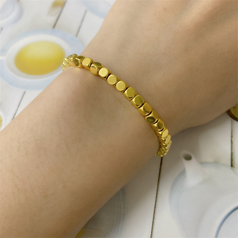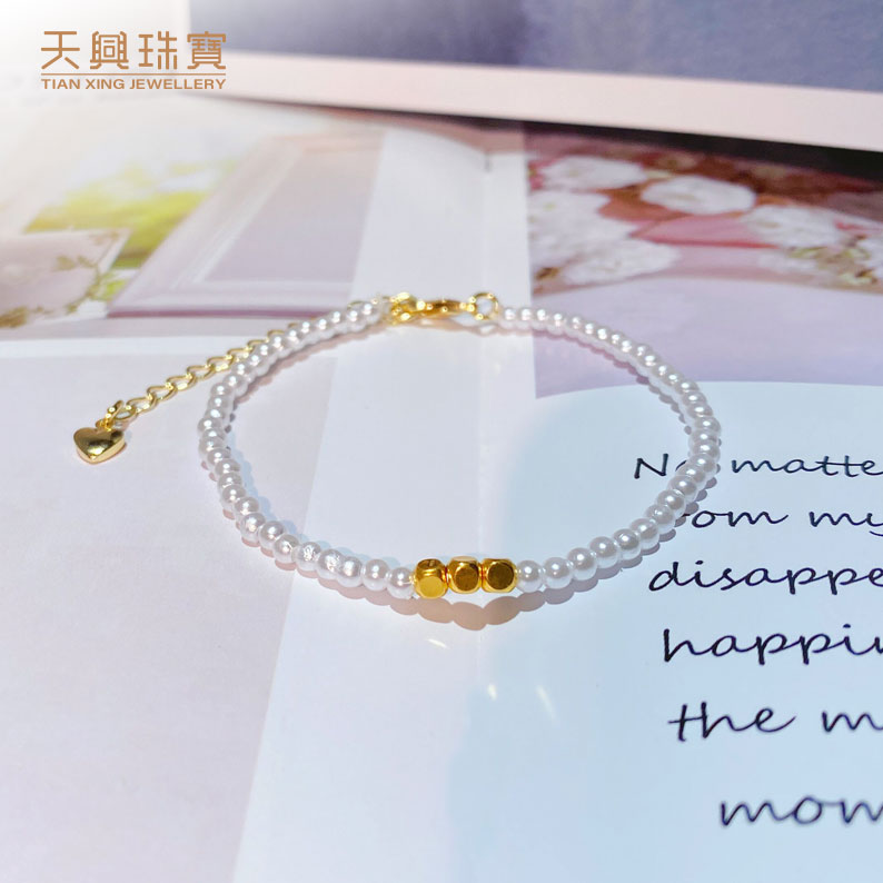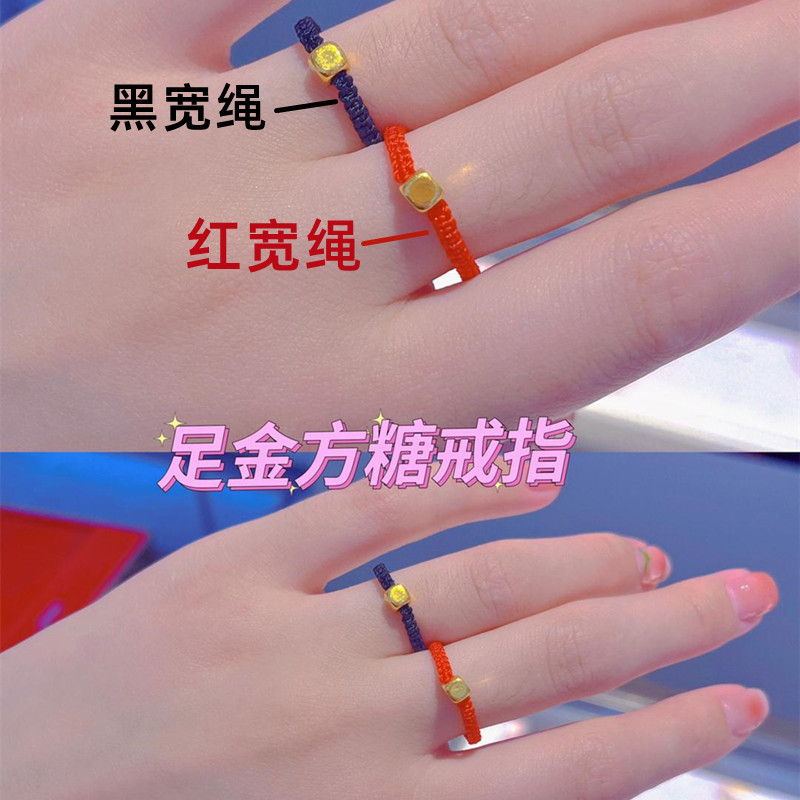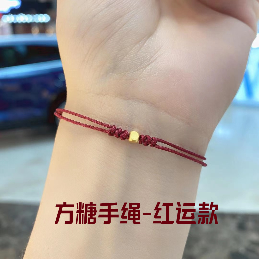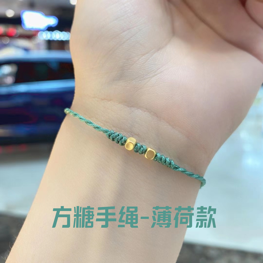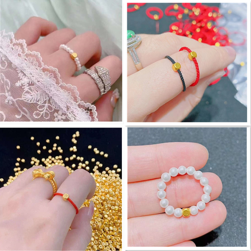 足金999小方糖金珠戒指吊坠黄金方珠手链(免费配珍珠或编绳)