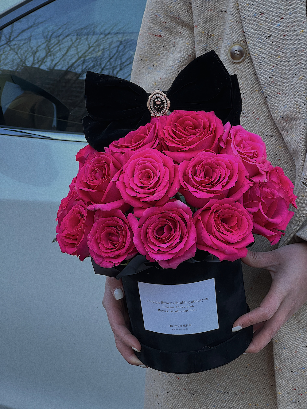 [丝绒蝴蝶结 弗洛伊德玫瑰花桶]