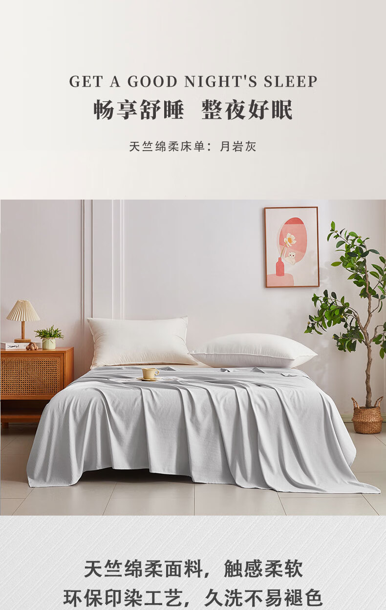【分仓直发包邮】梦洁天竺绵柔床单230×245cm—月岩灰