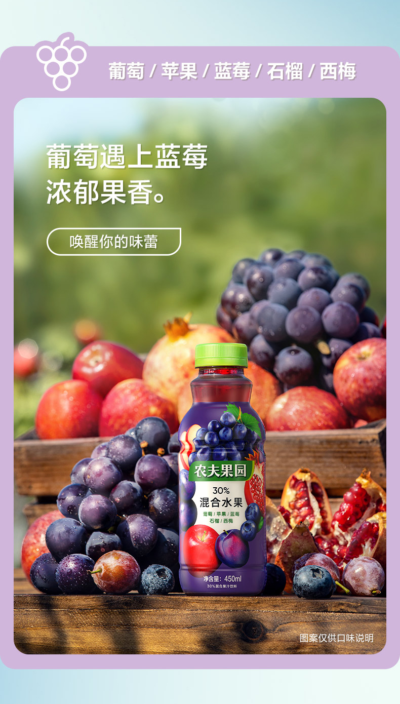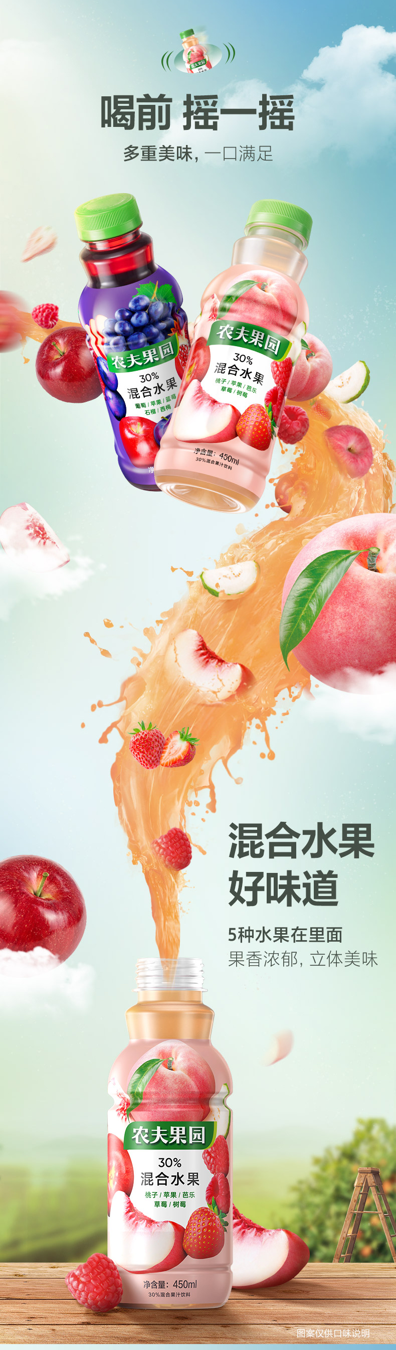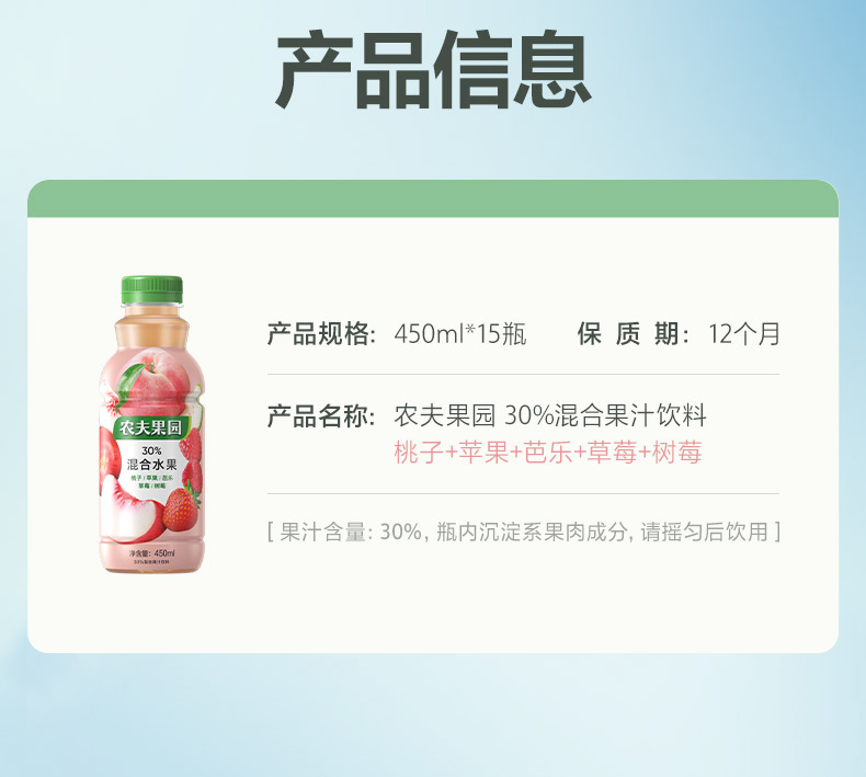 农夫果园 30%混合果汁饮料 450ml*15瓶 桃子&苹果&芭乐&草莓&树莓 包邮