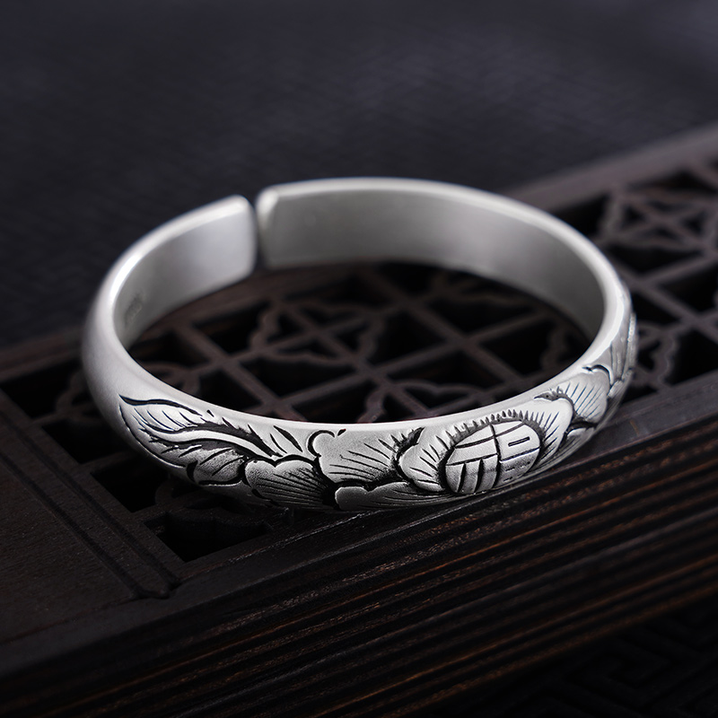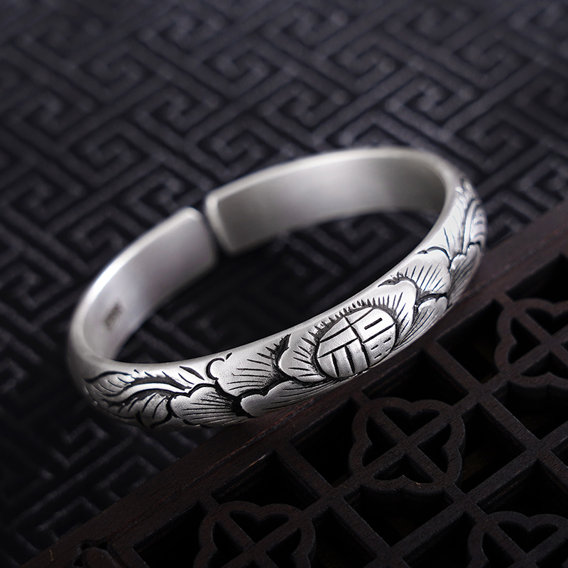 【花开成福】子佩集S999银手工手镯原创设计【55041212】2407