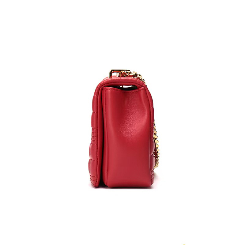 Burberry/博柏利 女包皮质Lola小号绗缝萝纳包单肩斜挎包 23*13cm-黑色-亮红色