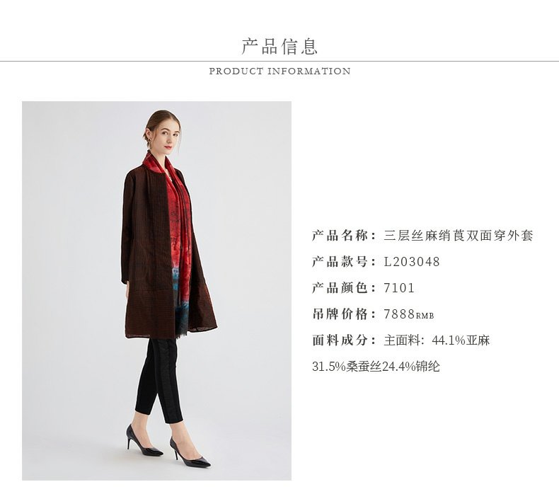 TANGY Collection/天意精品秋冬新品芦野系列丝麻绡莨双面穿外套