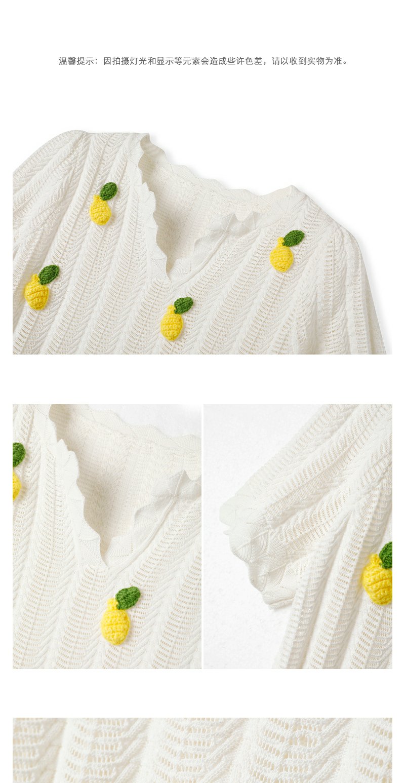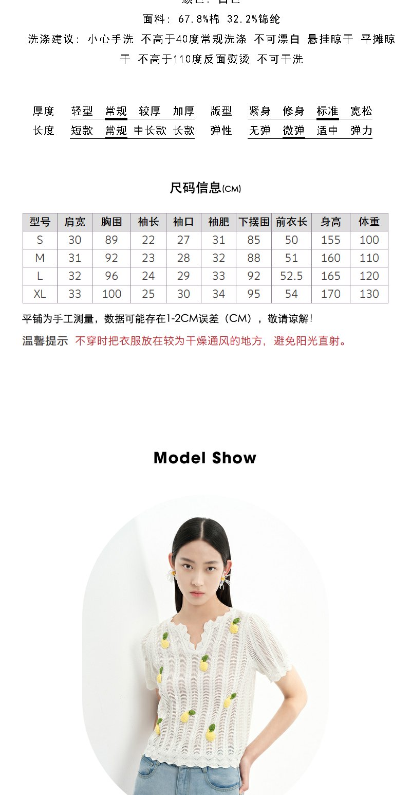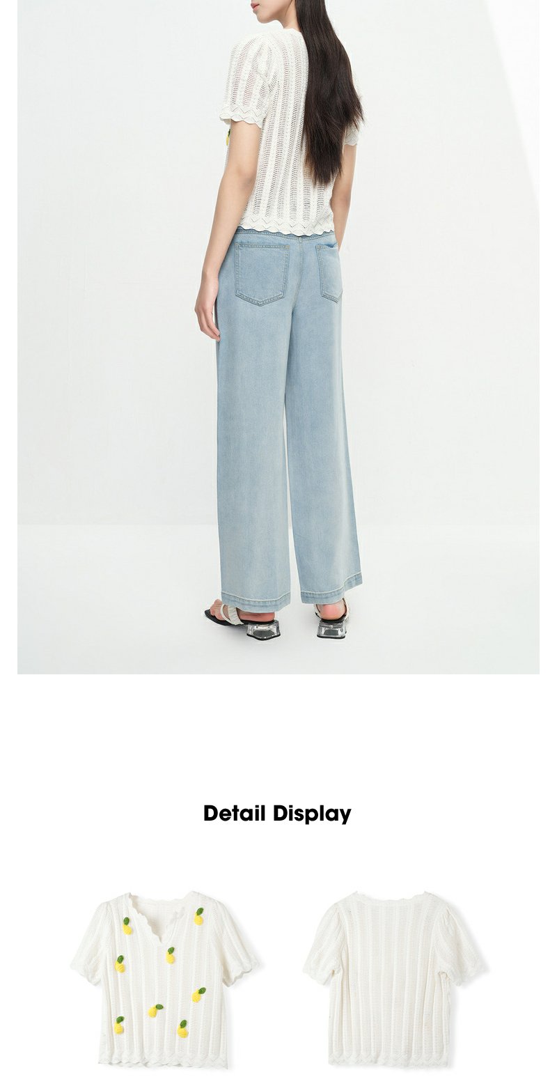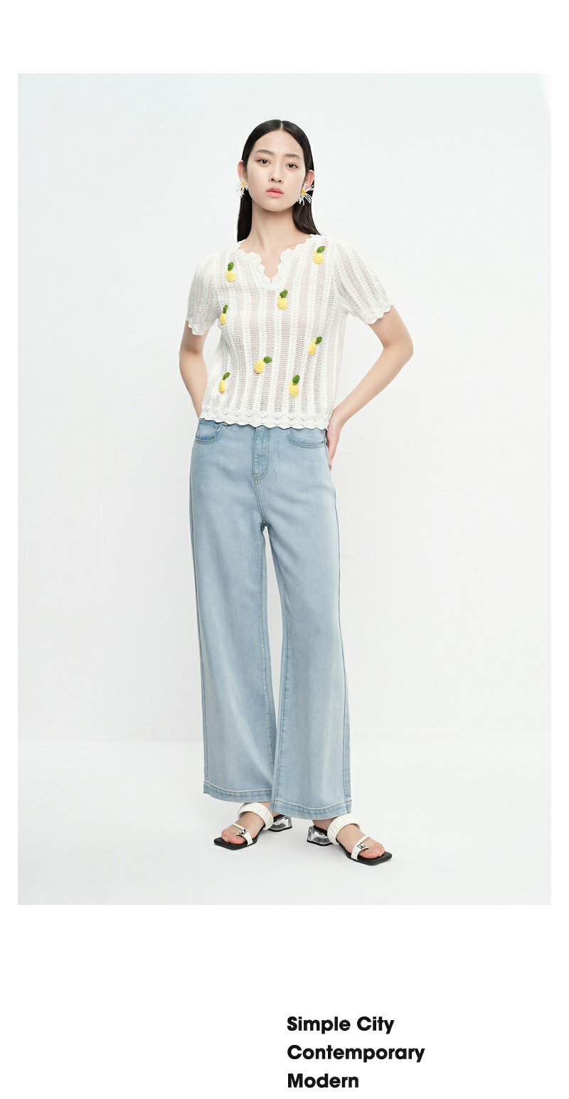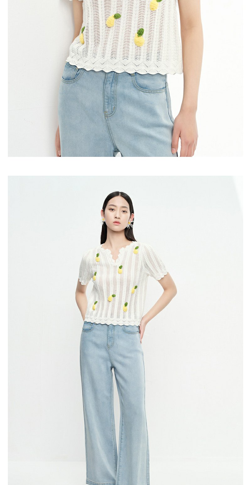 NEELLY纳俪商场同款夏季趣味菠萝刺绣针织衫女短袖镂空套头衫上衣N23053A01167