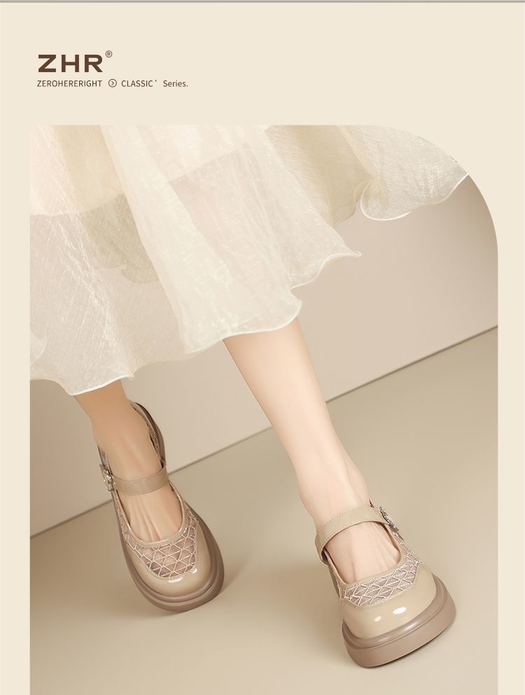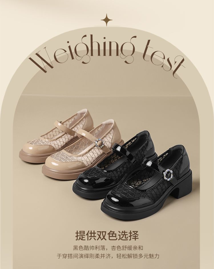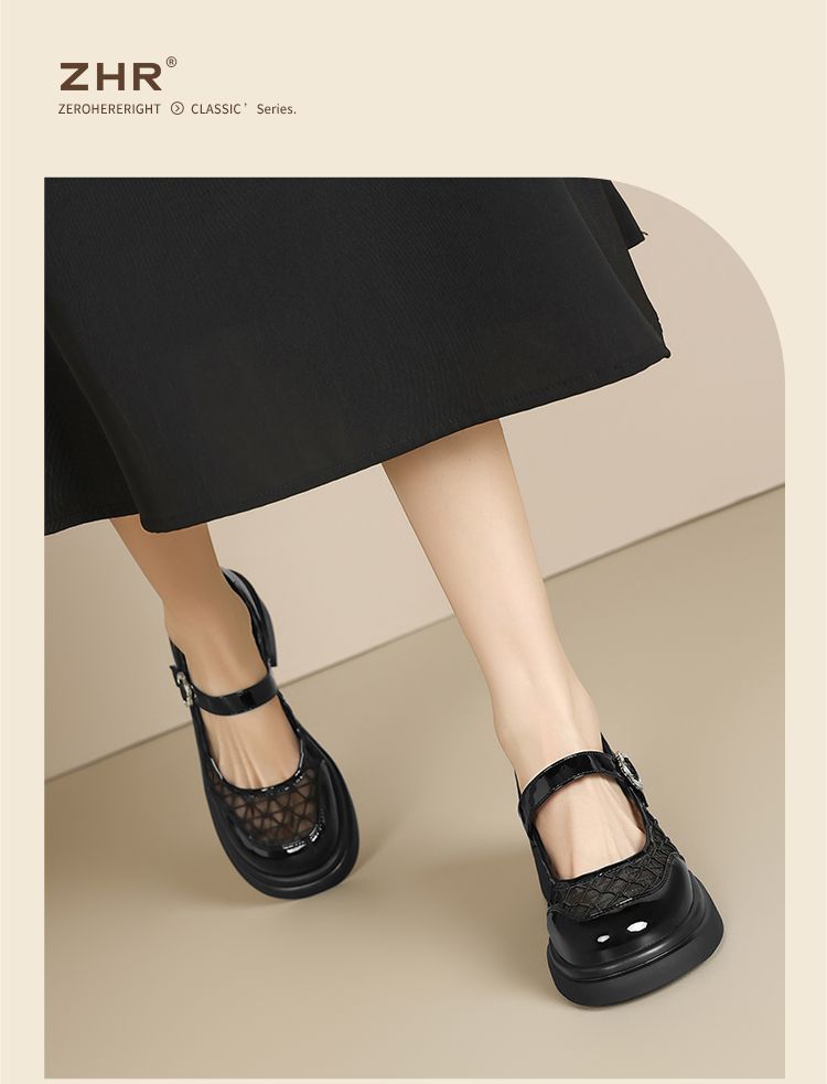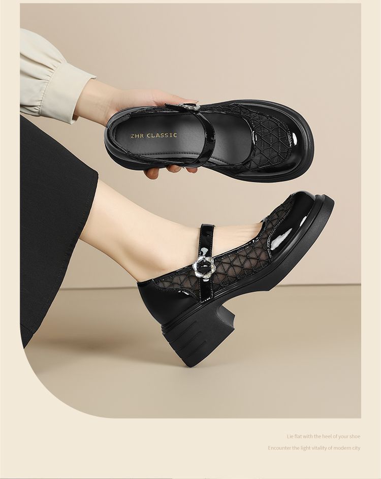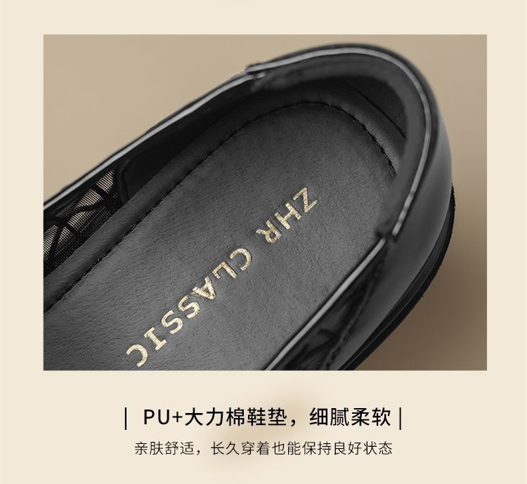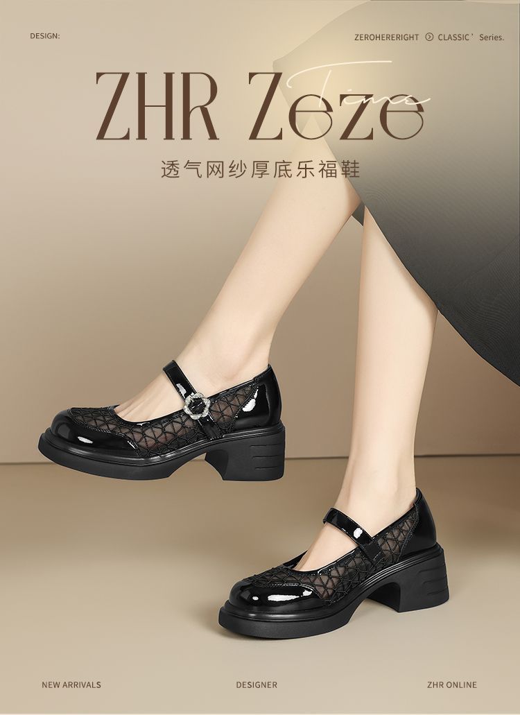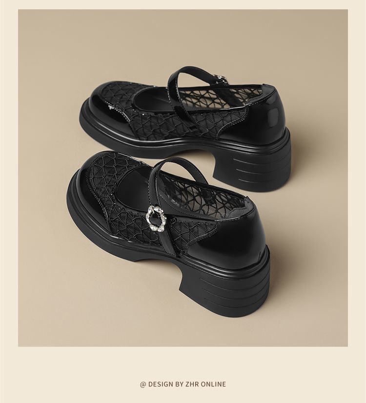 ZHR黑色玛丽珍女款2025新款法式粗跟单鞋夏季厚底透气网纱乐福鞋