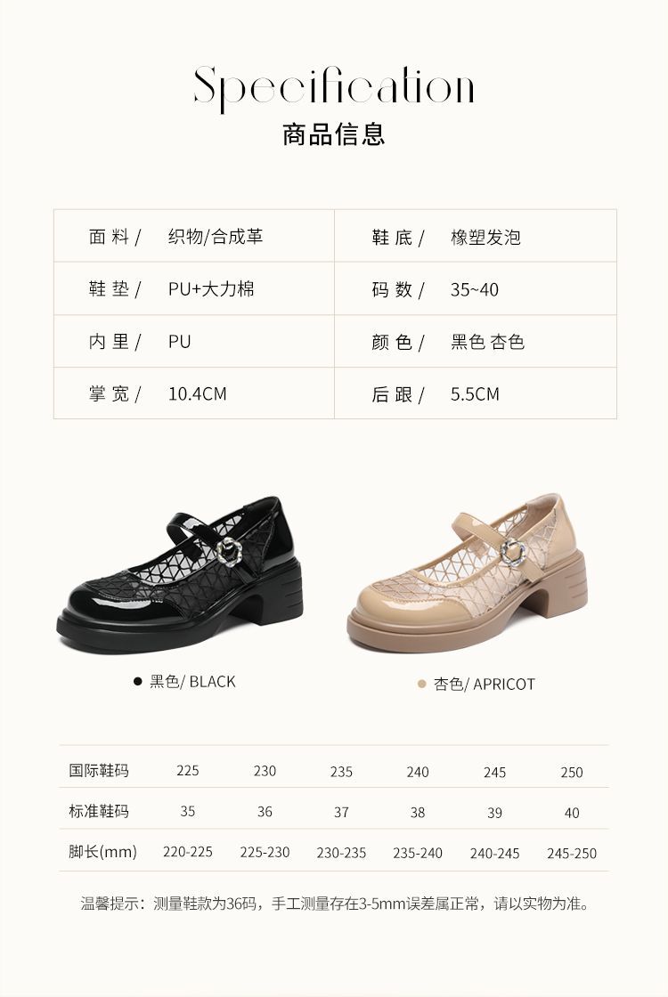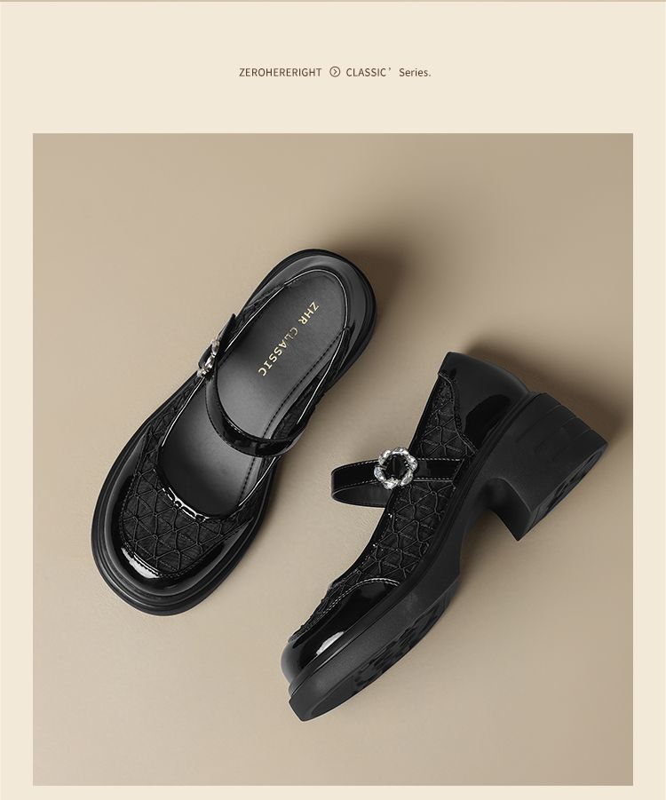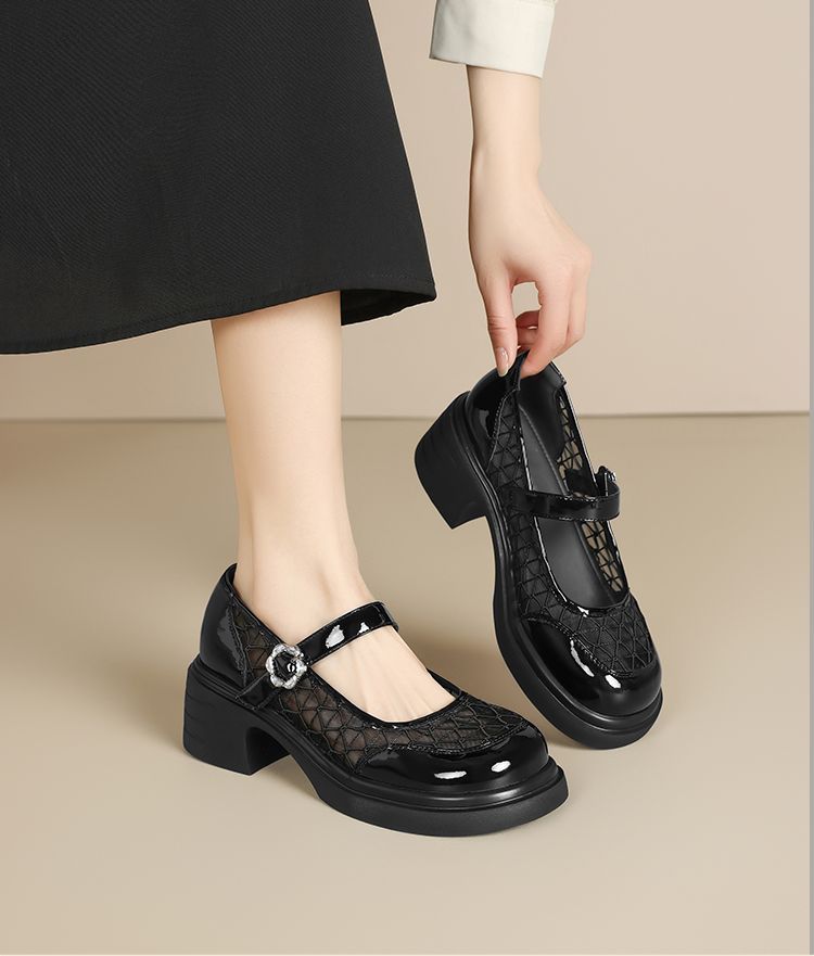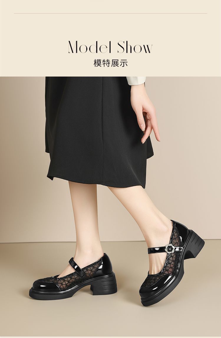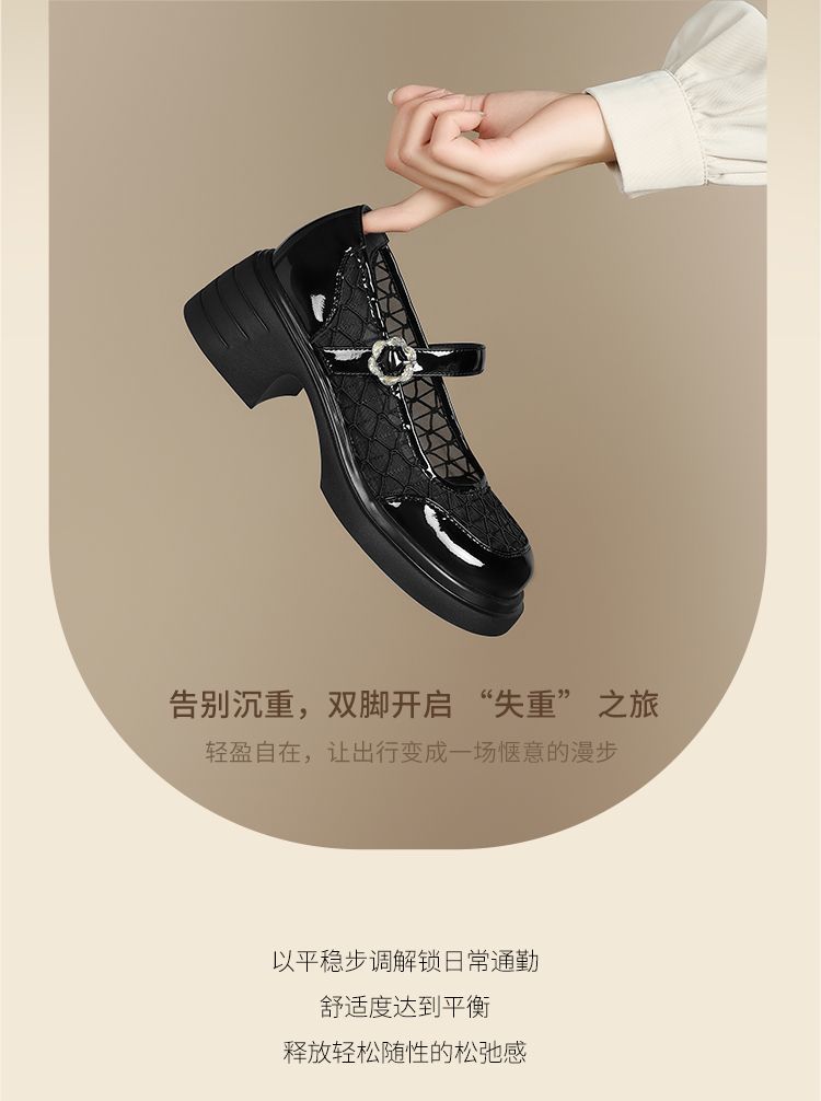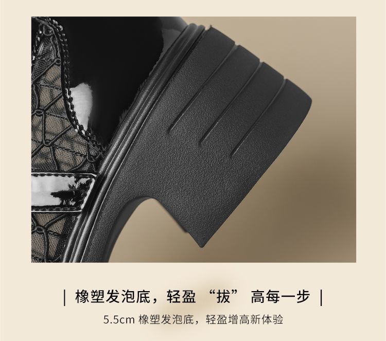 ZHR黑色玛丽珍女款2025新款法式粗跟单鞋夏季厚底透气网纱乐福鞋