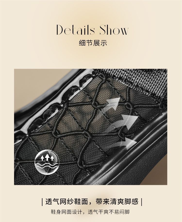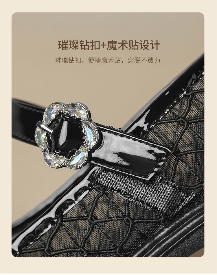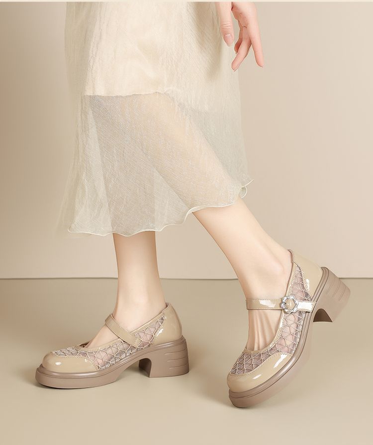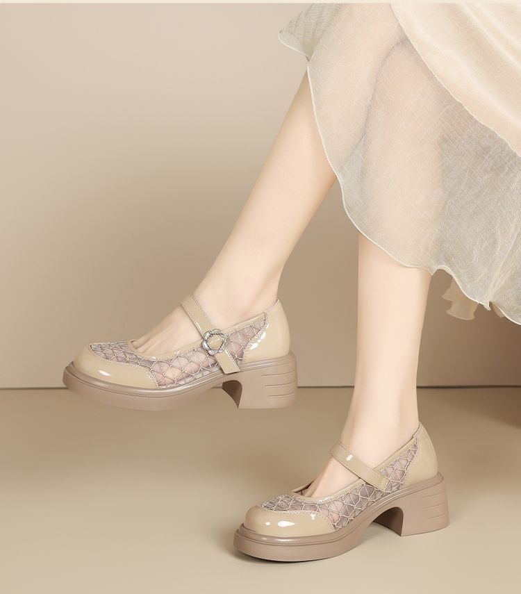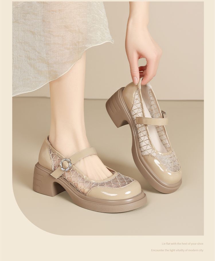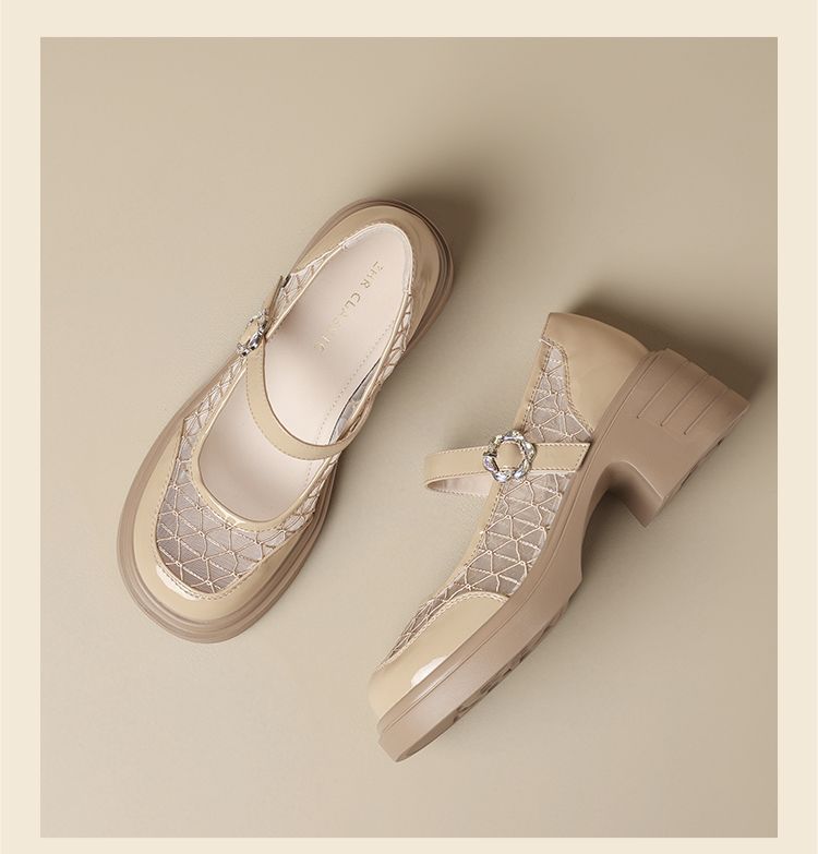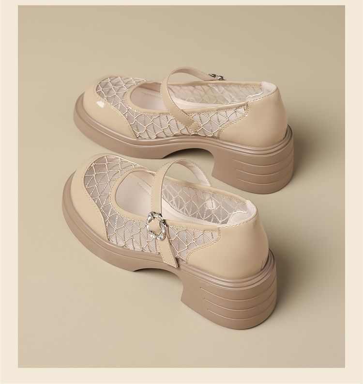 ZHR黑色玛丽珍女款2025新款法式粗跟单鞋夏季厚底透气网纱乐福鞋