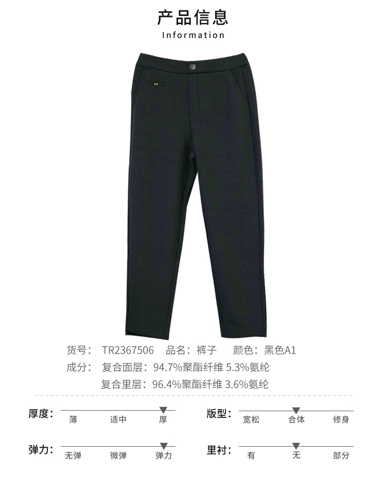 VIVIAN LIU薇薇安刘TR2367506冬女装新款加绒斜插兜小西裤
