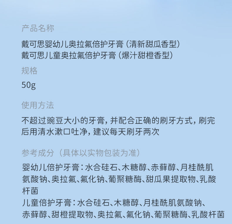 戴可思儿童婴幼儿奥拉氟倍护牙膏分龄防蛀宝宝牙膏♥