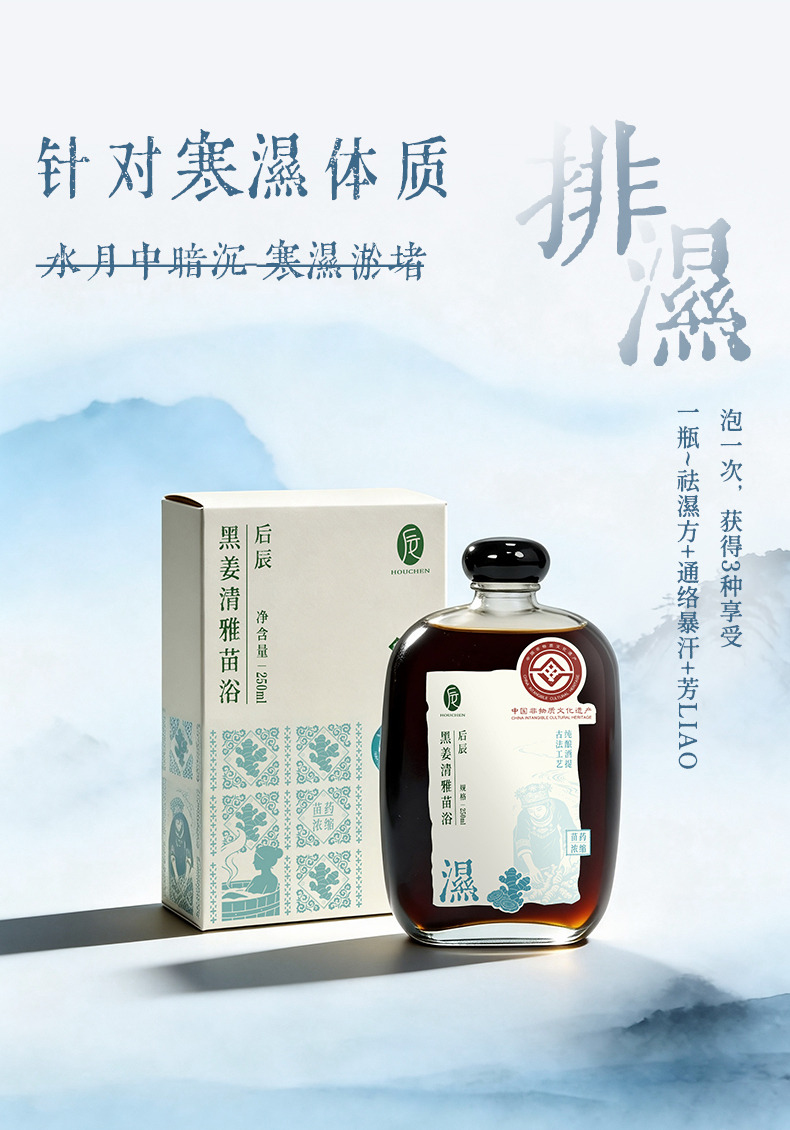 黑姜清雅苗沐浴液 非遗传承苗方低温无水萃取 洗浴泡澡减压 赶跑湿寒后辰泡浴液