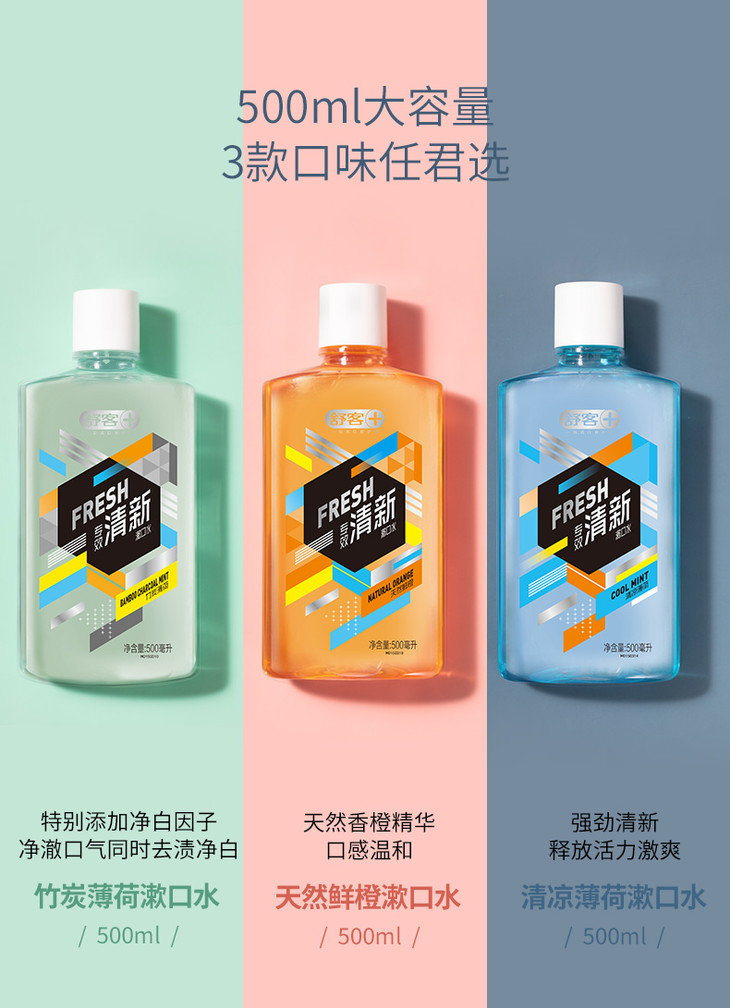 【快手】舒客舒克清新漱口水500ml*2瓶 天然鲜橙除口臭异味牙渍去口气口气清新