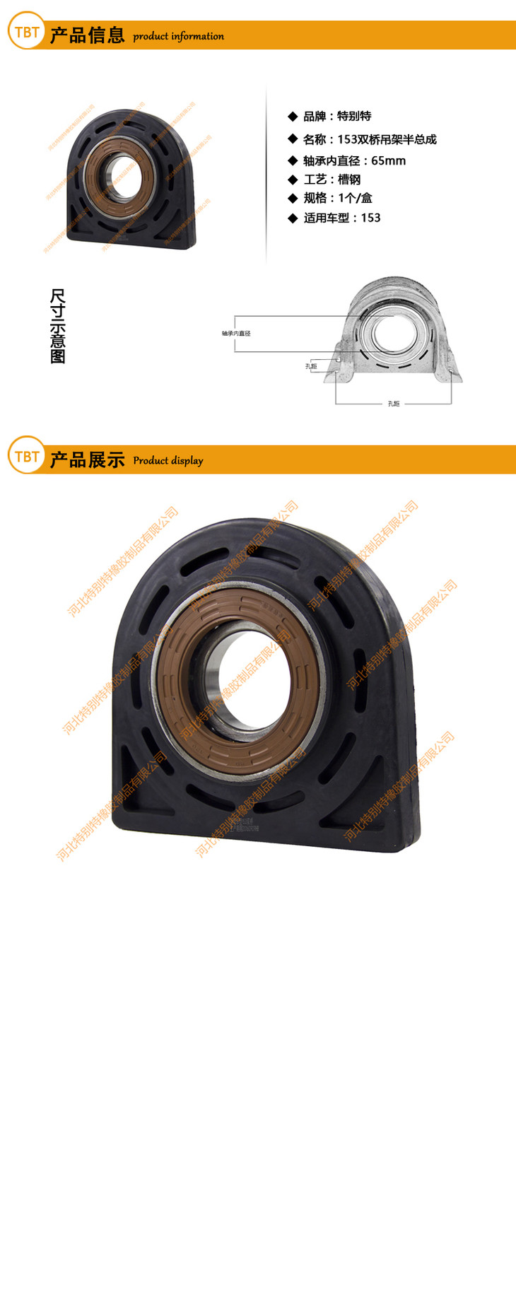 | 153吊架半总成(黑)/153传动轴吊架半总成/153传动轴过桥半总成/153半总成(单价=1个,6个=1箱) |