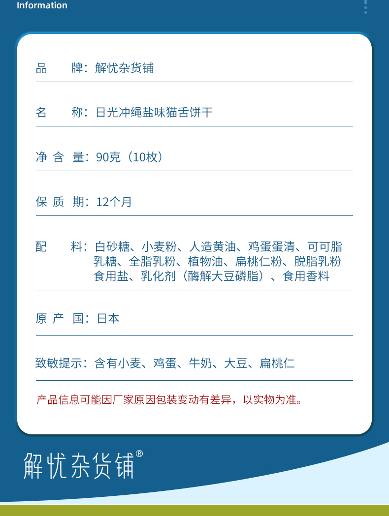 解忧杂货铺日光猫舌饼干 白巧克力味/冲绳盐味/抹茶味 /草莓味/黑巧克力味可盐可甜醇厚诱人 059712/059716/059723/059722/152336