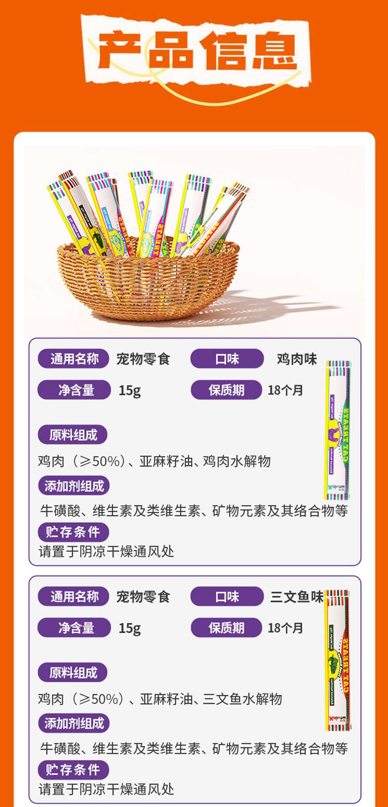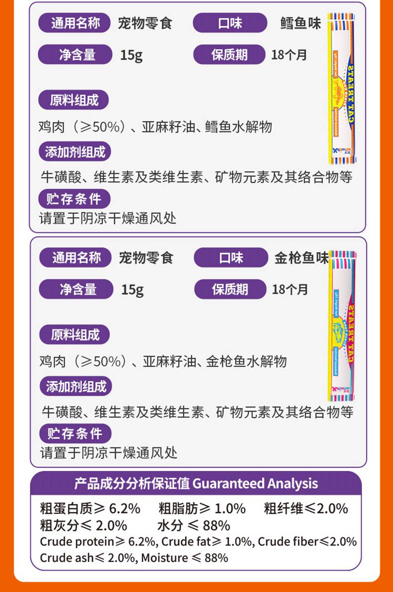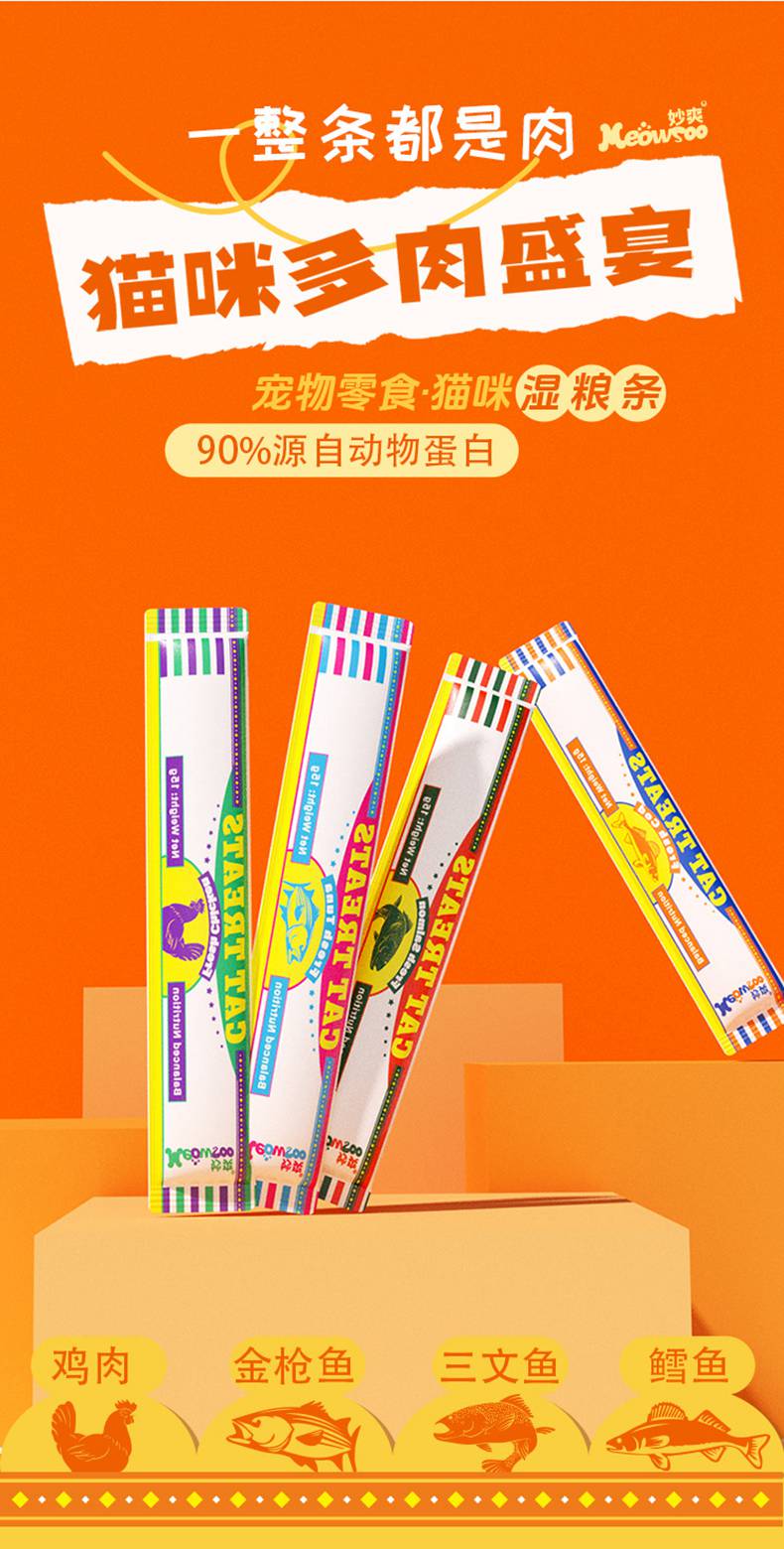 爆款妙爽外贸英文版猫条15g多口味 出口东南亚 营养湿粮 猫咪零食