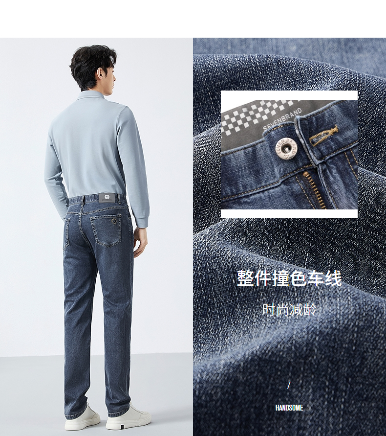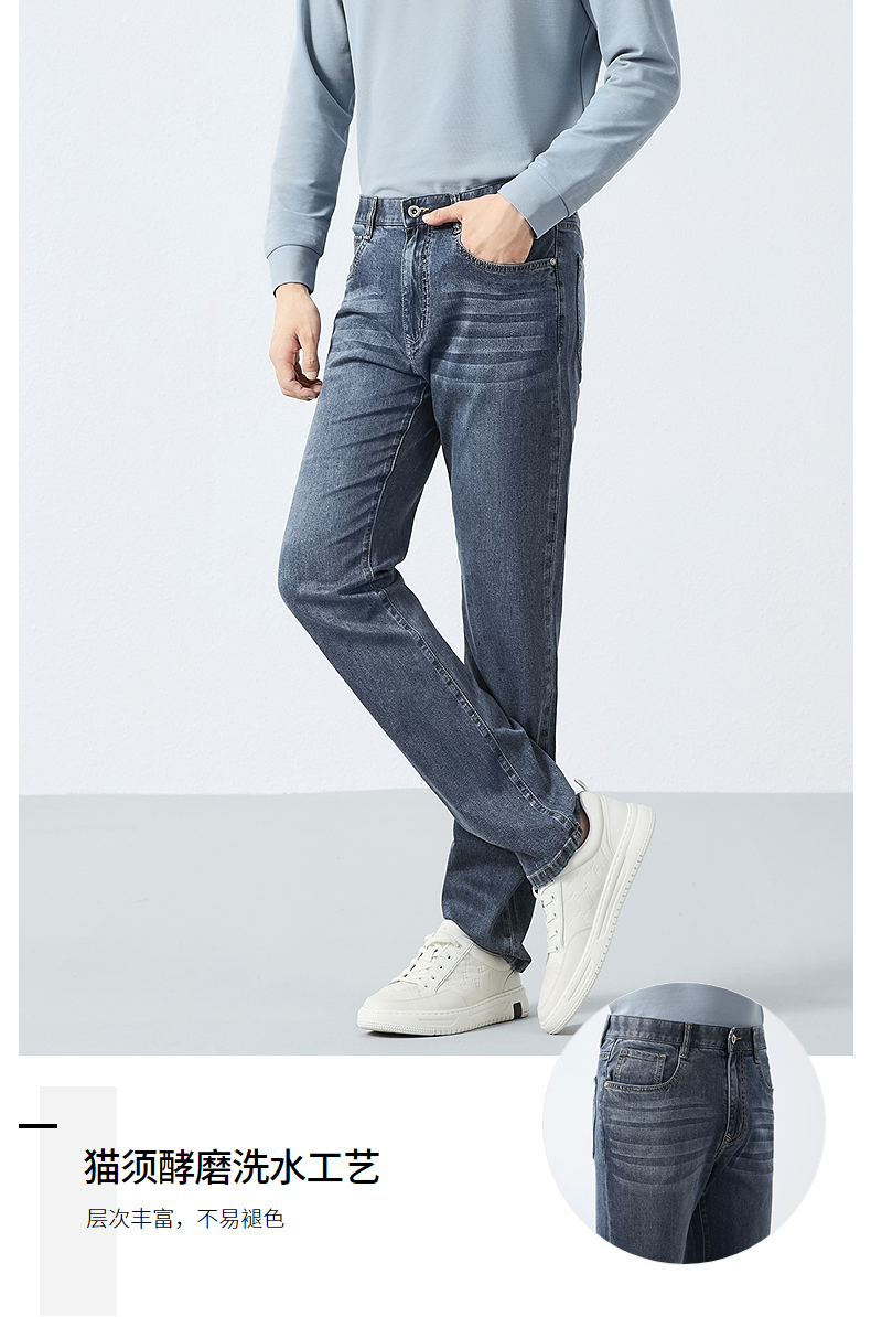 【含竹纤维】柒牌水洗牛仔裤男2025春季新款休闲百搭耐磨直筒长裤128H72880