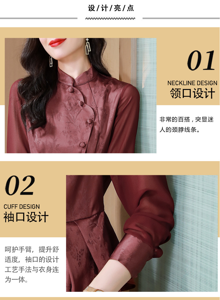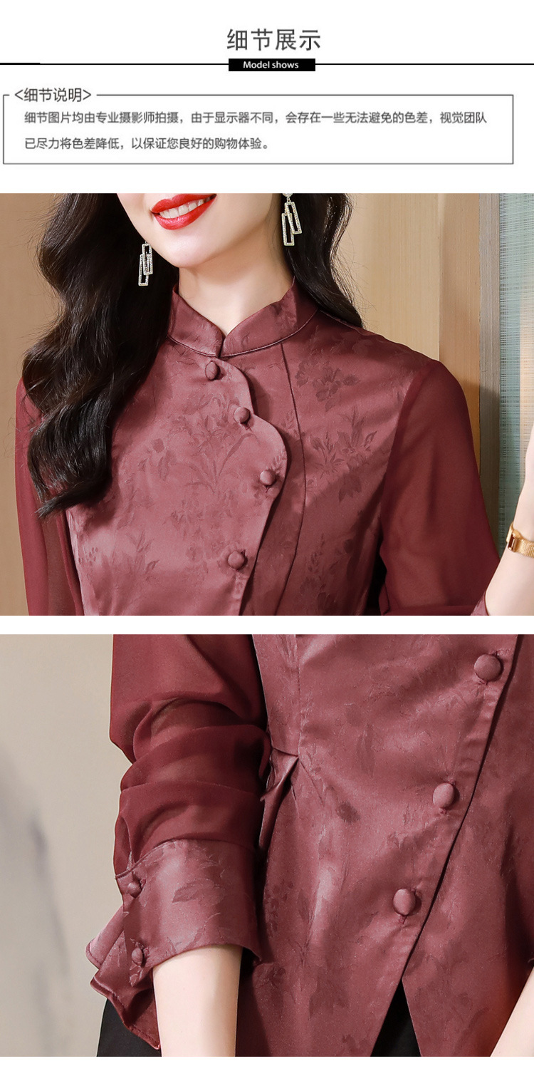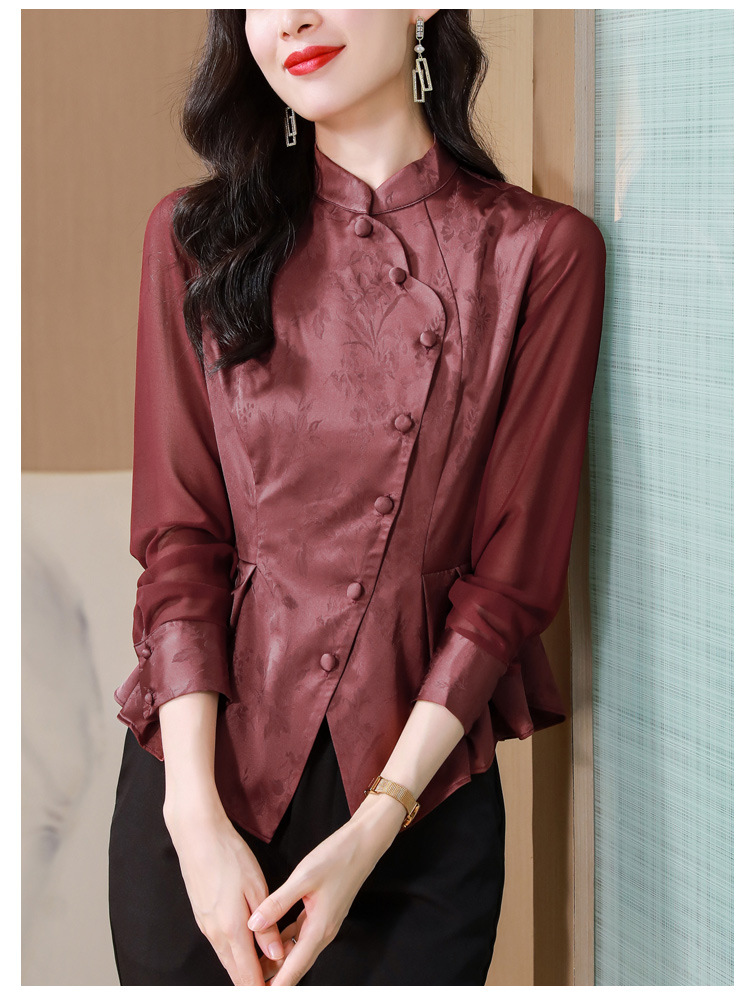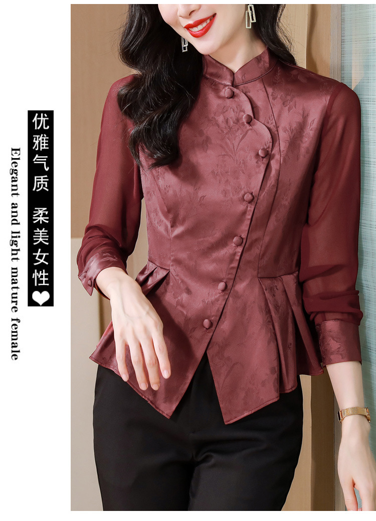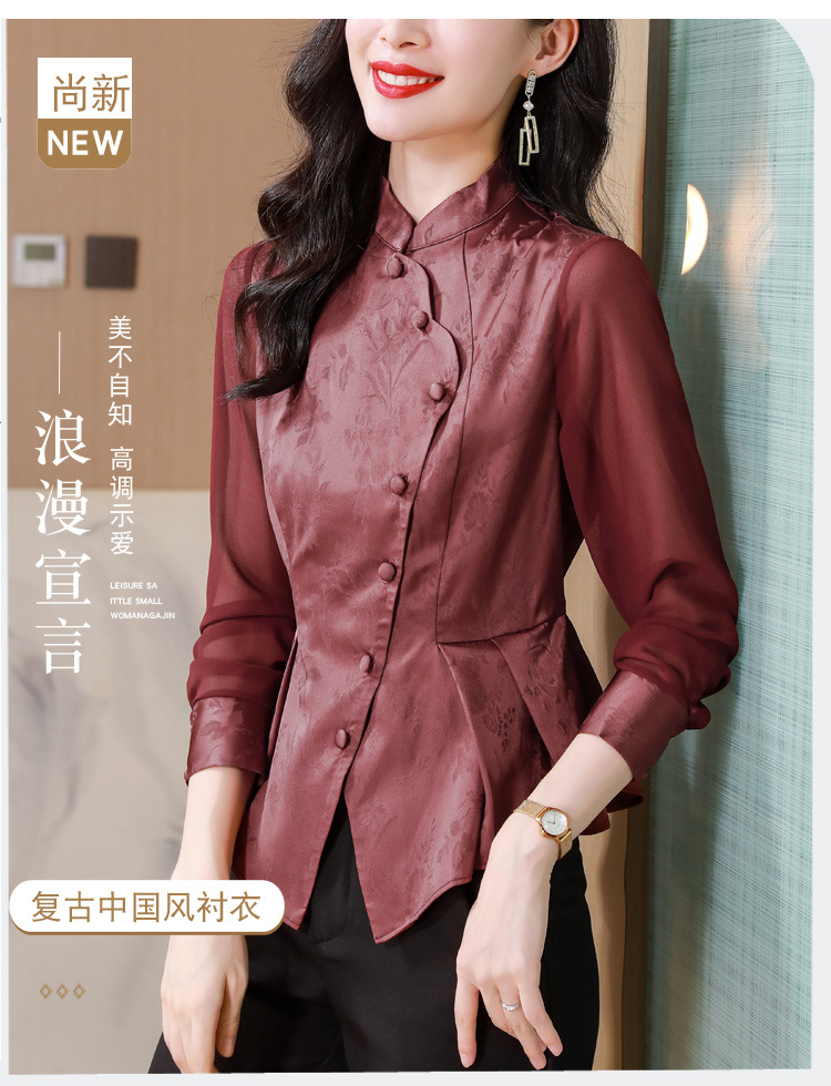 早秋新款,国潮气质缎面衬衫女别致复古斜门襟修身显瘦长袖衬衫KQL-B43N8386