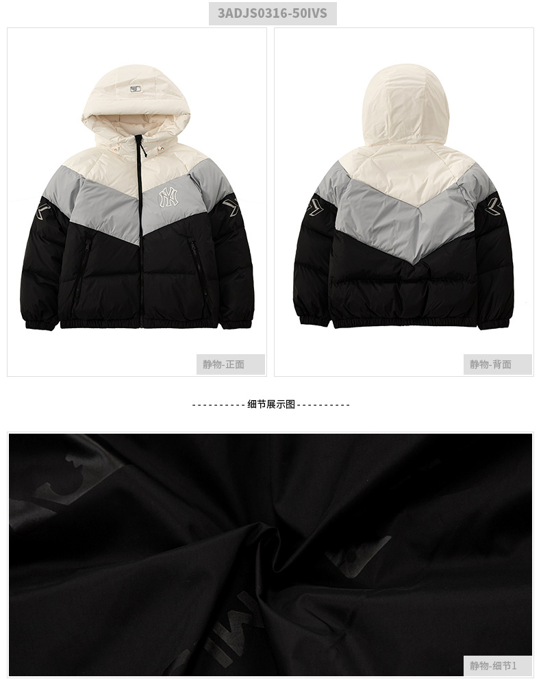 MLB官方 男女情侣连帽羽绒服NY串标时尚宽松21年秋季新款3ADJS0316-50IVS