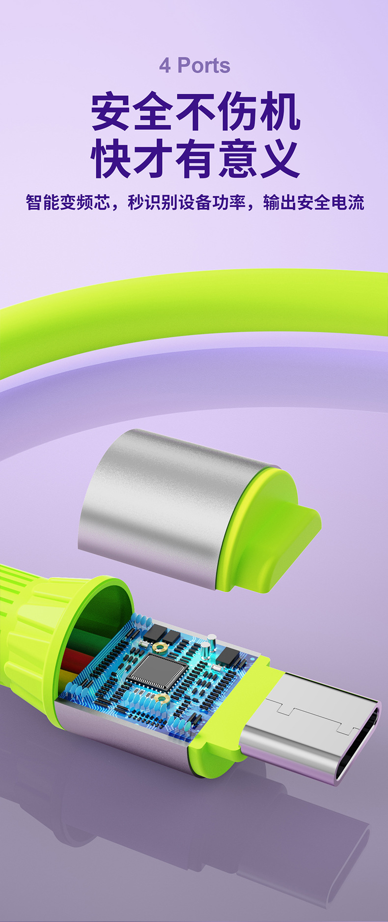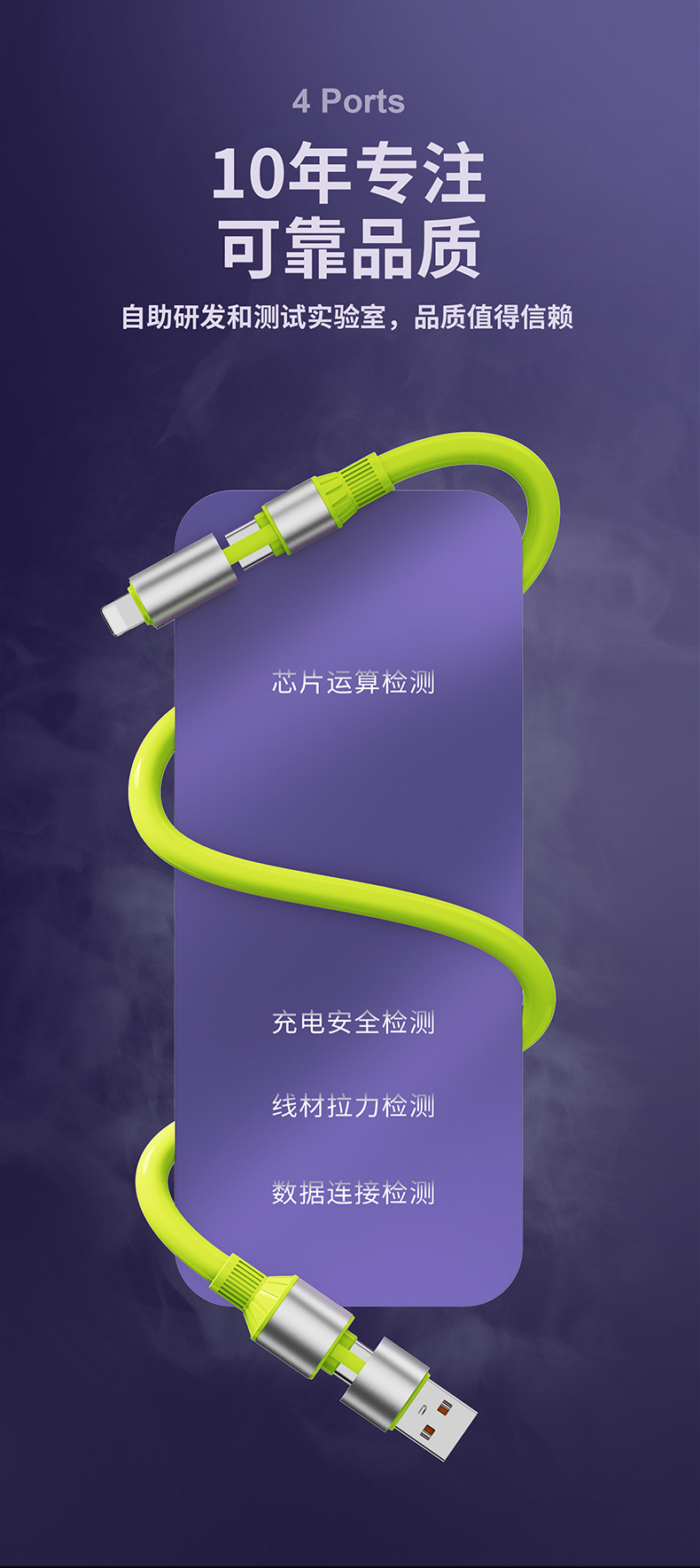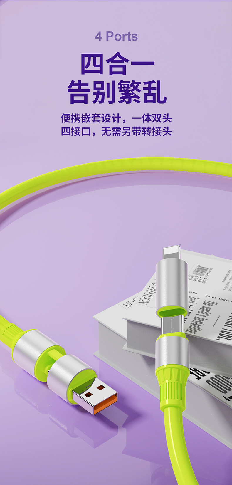 【双头四接口!出门只带一条线】超级快充四合一数据线适用苹果华为安卓手机type-c车载通用充电线。rb